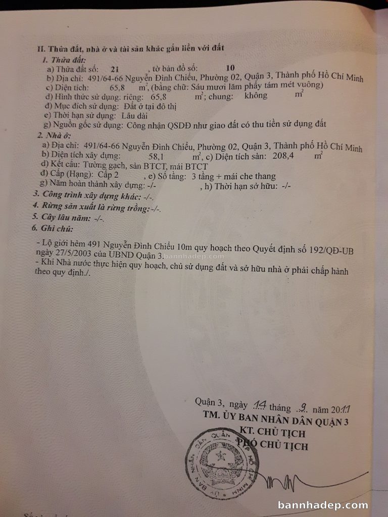 Bán nhà 491/64-66 Nguyễn Đình Chiểu phường 02 quận 3