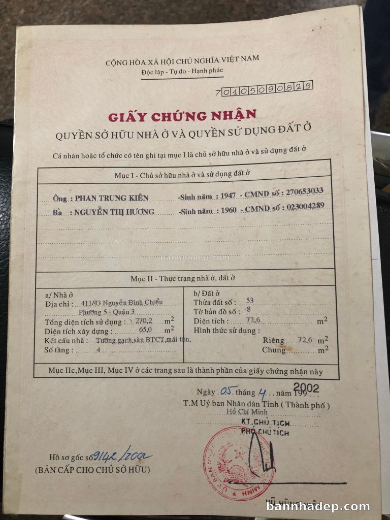 Bán nhà 404/4 Nguyễn Đình Chiểu phường 04 quận 3