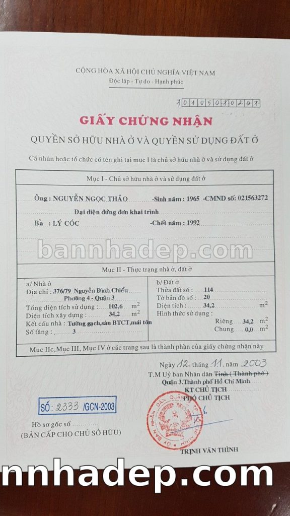 Bán nhà 376/84 Nguyễn Đình Chiểu phường 04 quận 3