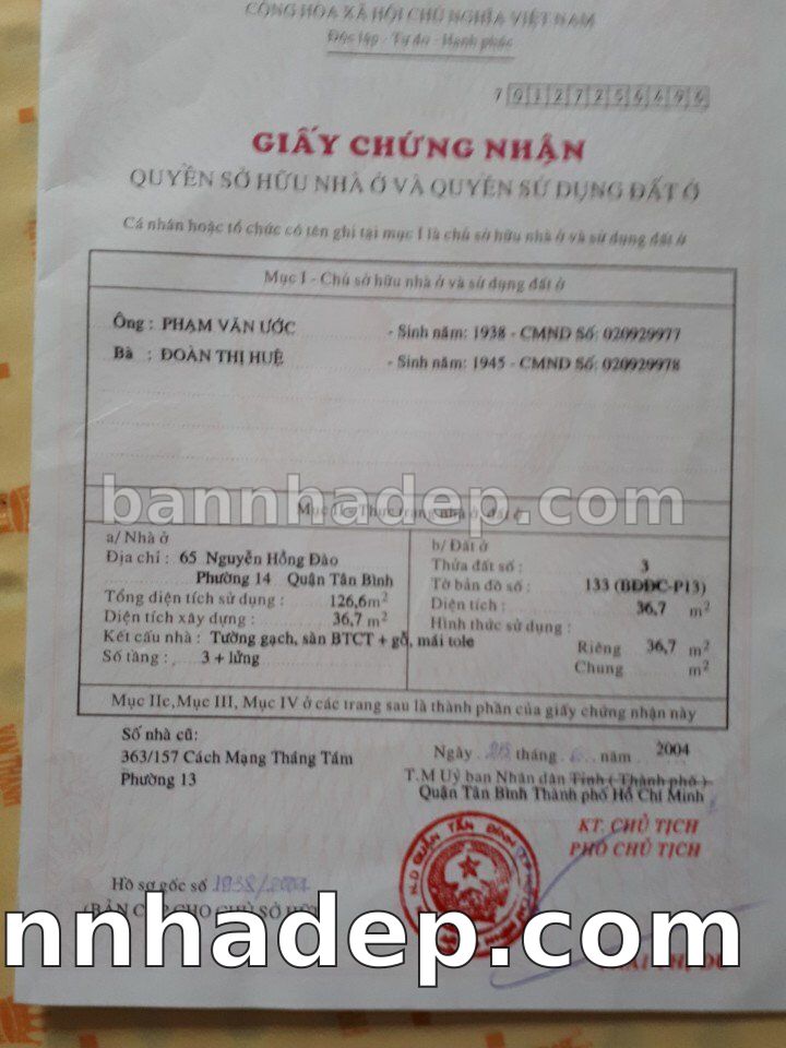 Bán nhà 65 Nguyễn Hồng Đào phường 01 quận Tân Bình