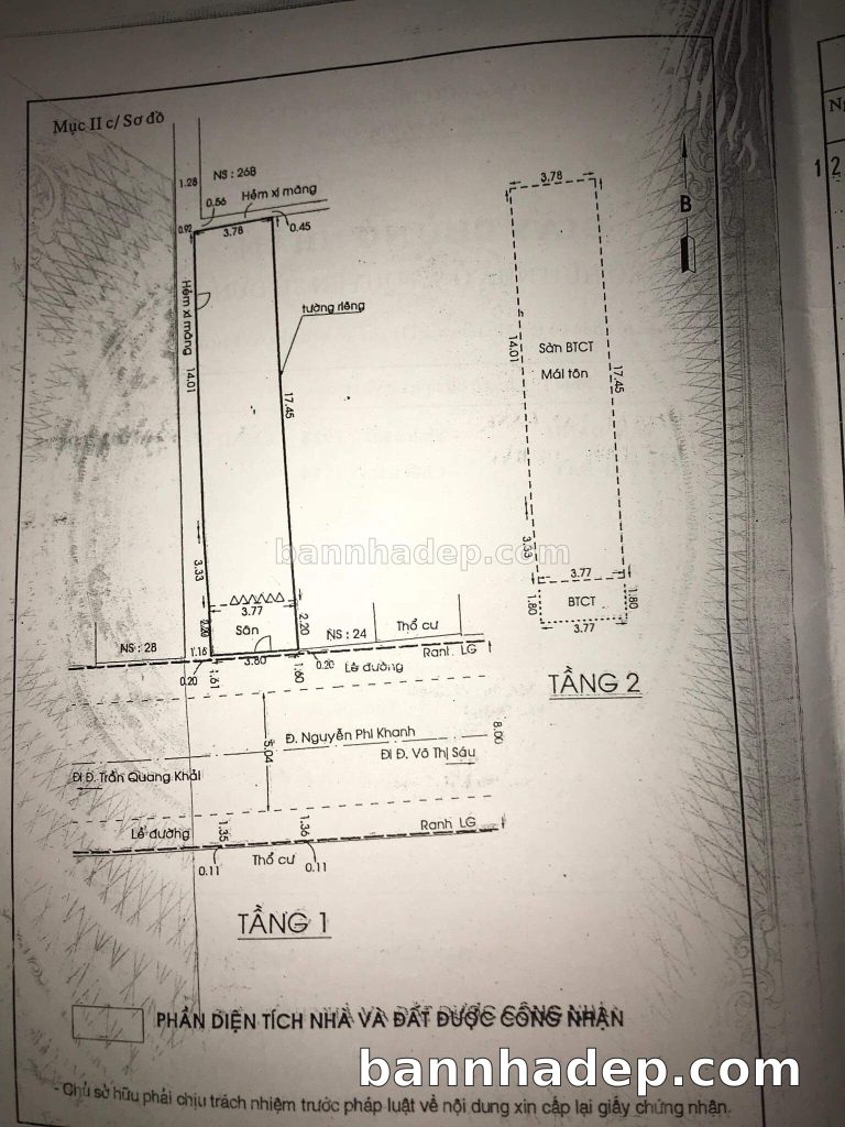 Bán nhà 26 Nguyễn Phi Khanh phường Tân Định quận 1