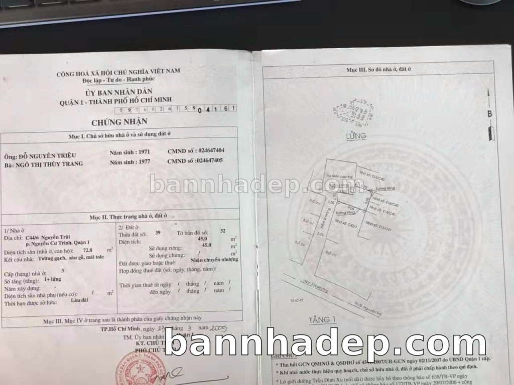 Bán nhà C44/6 Nguyễn Trãi phường Nguyễn Cư Trinh quận 1