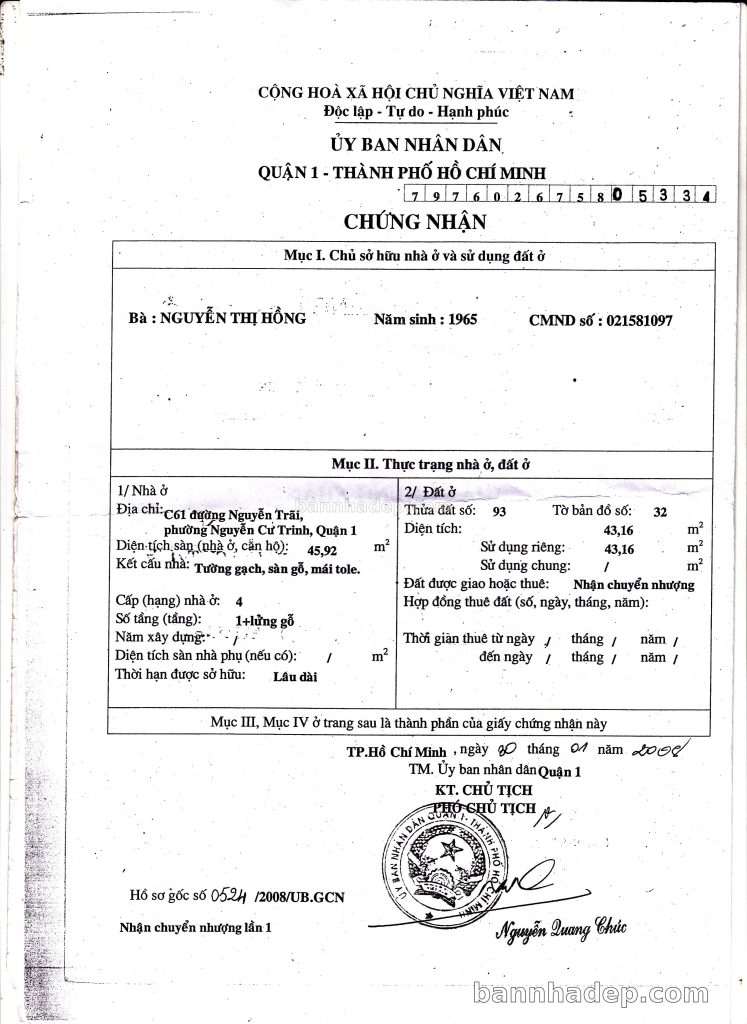 Bán nhà 95/5 Nguyễn Trãi phường Bến Thành quận 1