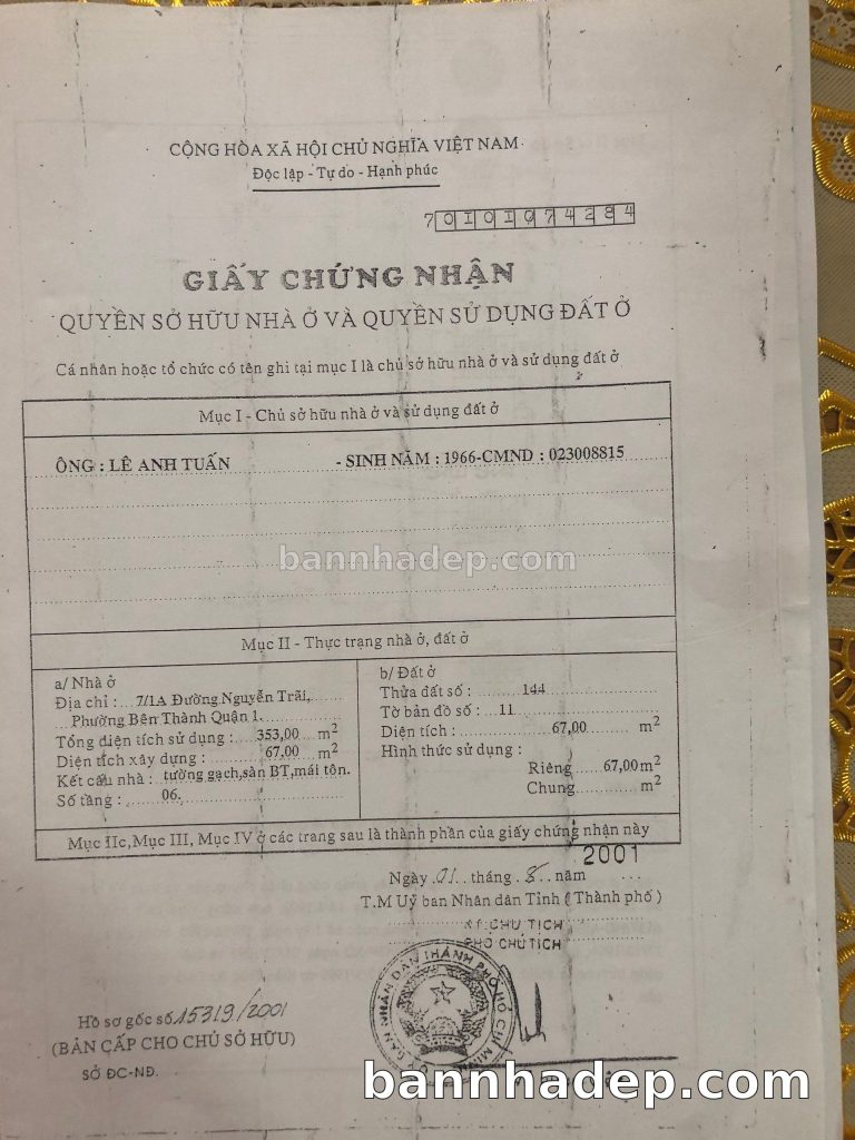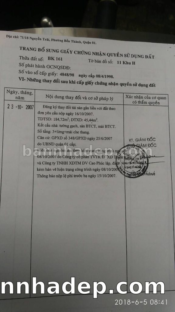 Bán nhà 71/1 Nguyễn Trãi phường Bến Thành quận 1