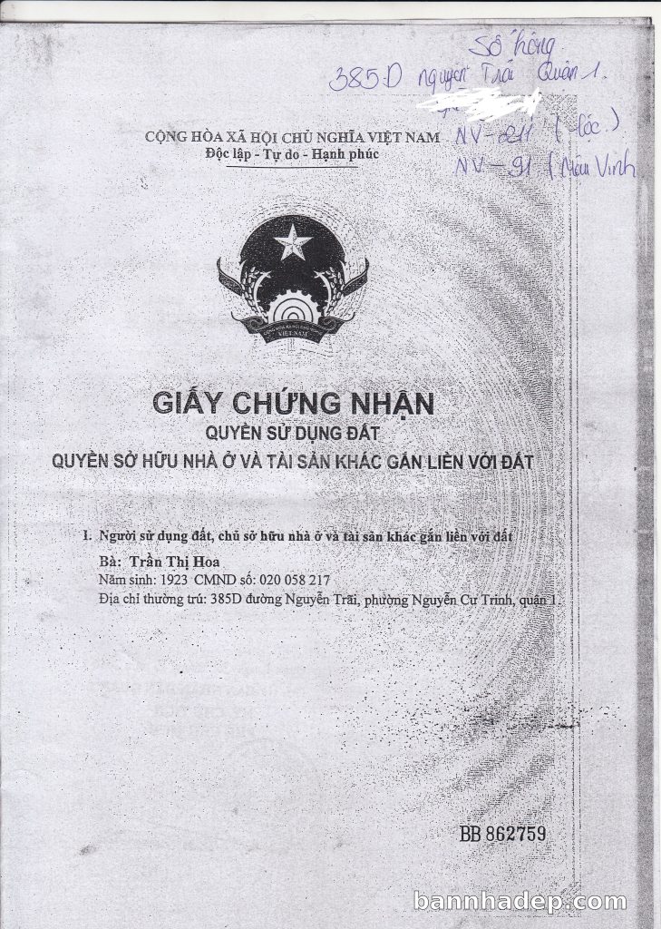 Bán nhà 385D Nguyễn Trãi phường Nguyễn Cư Trinh quận 1