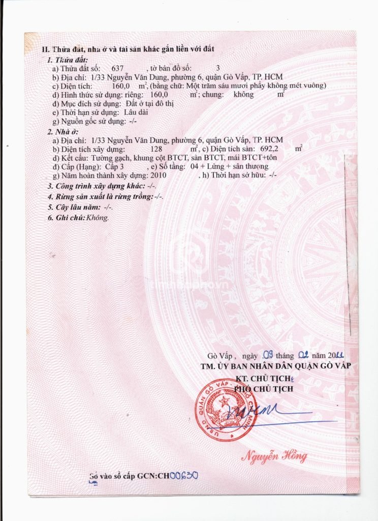 Bán nhà 1/33 Nguyễn Văn Dung phường 6 quận Gò Vấp