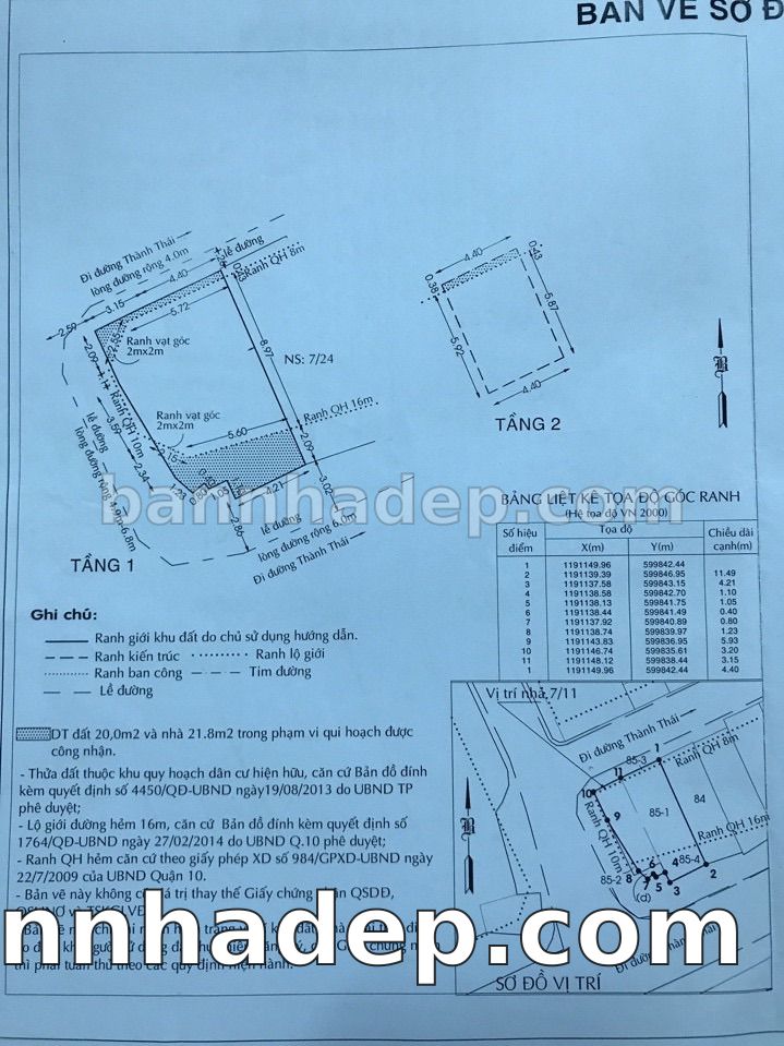 Bán nhà 7/24 Thành Thái phường 01 quận 10