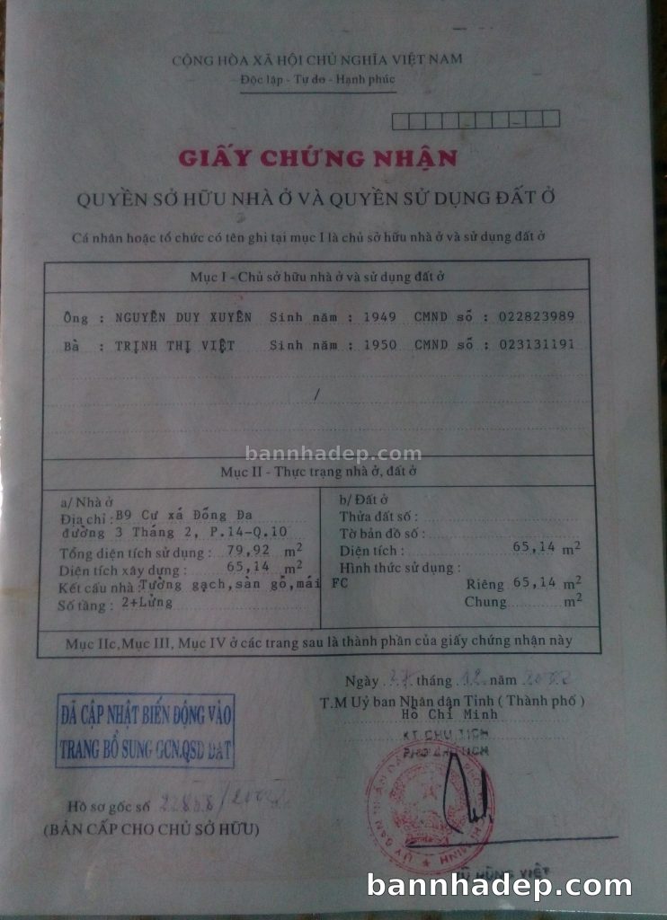 Bán nhà 7/26 Thành Thái phường 01 quận 10