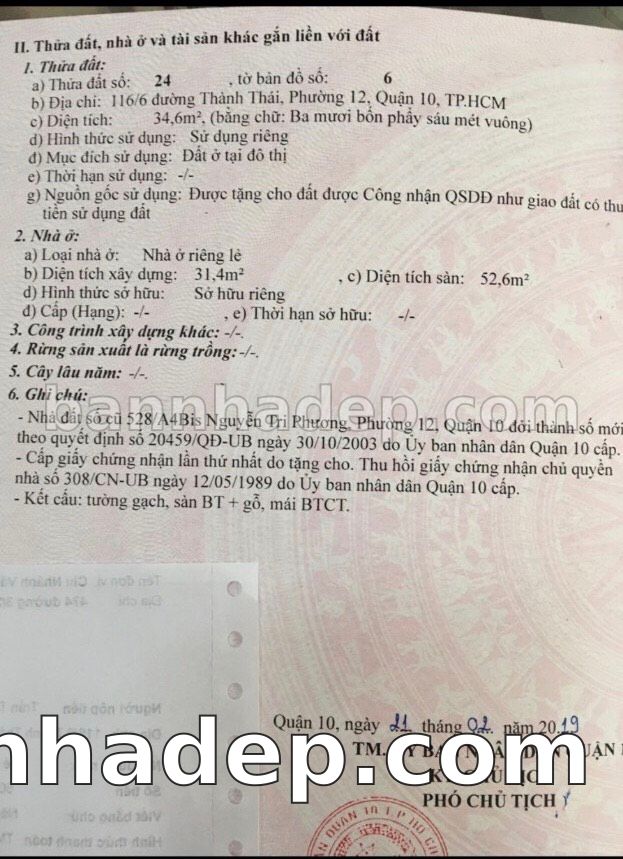 Bán nhà 116/6 Thành Thái phường 01 quận 10