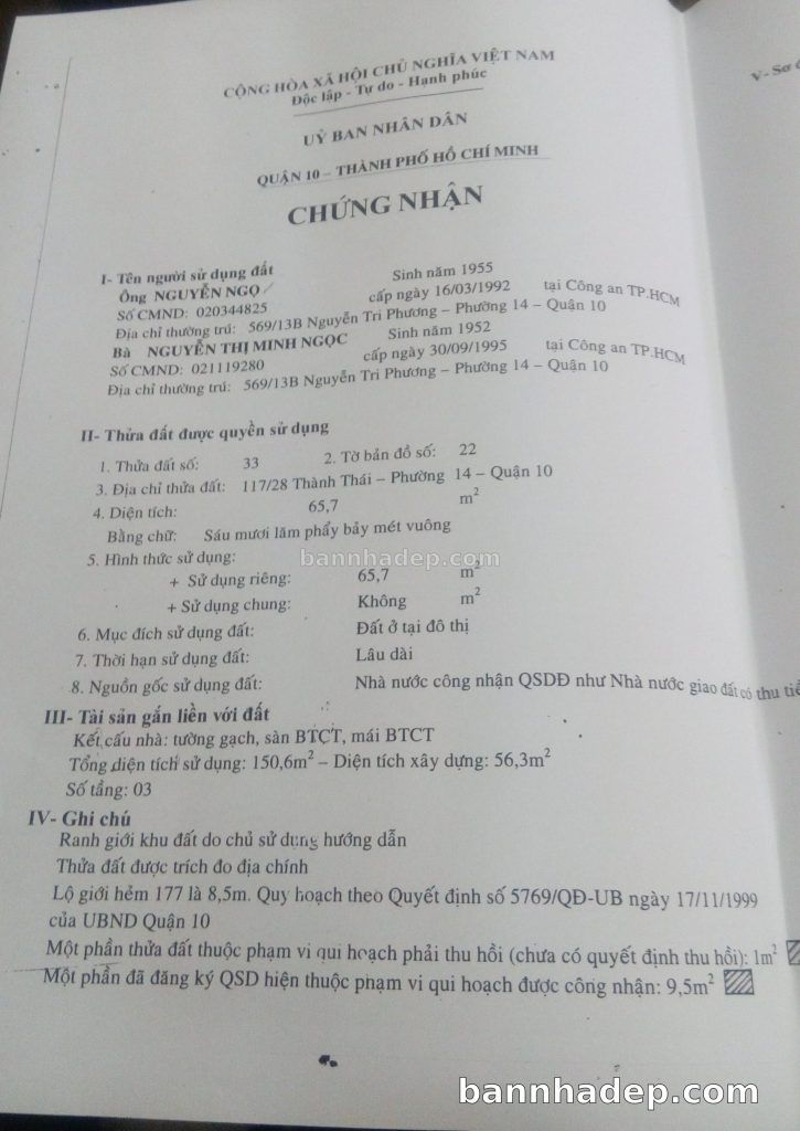 Bán nhà 117/38 Thành Thái phường 01 quận 10
