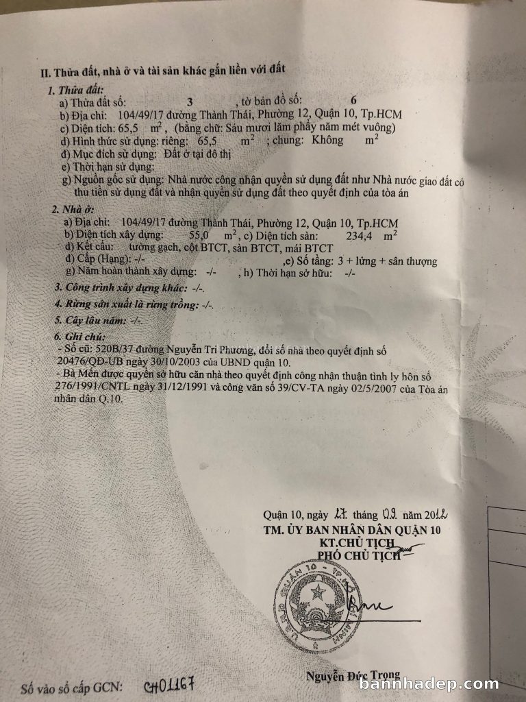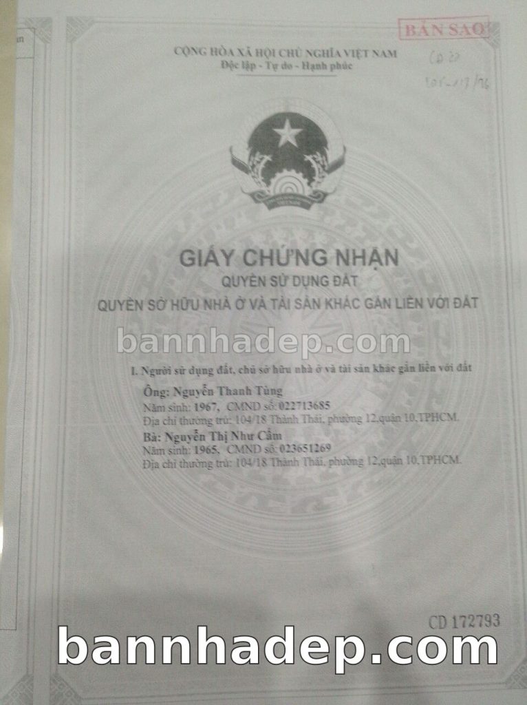 Bán nhà 104/49/17 Thành Thái phường 01 quận 10