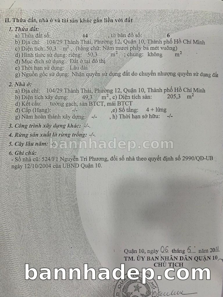 Bán nhà 104/29 Thành Thái phường 01 quận 10