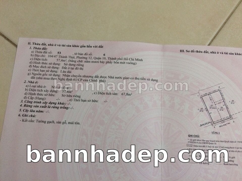 Bán nhà 104/35-37 Thành Thái phường 01 quận 10