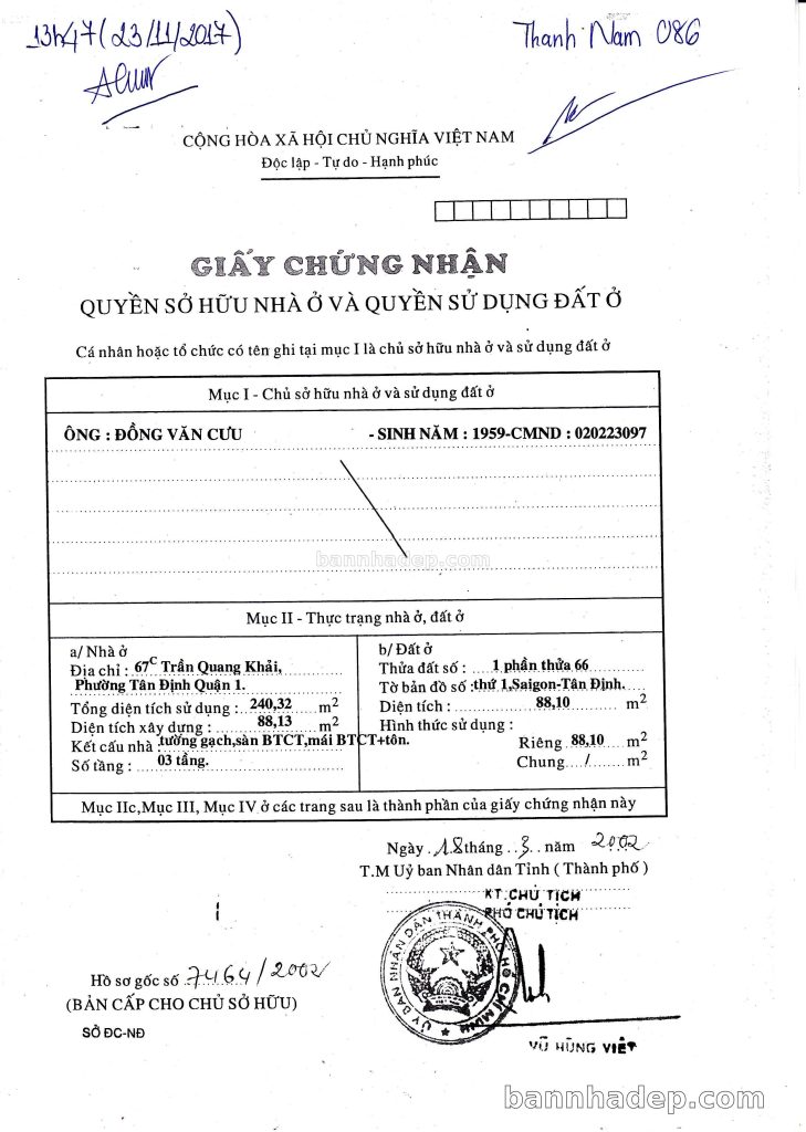 Bán nhà 33Bis – 35 Trần Quang Khải phường Tân Định quận 1