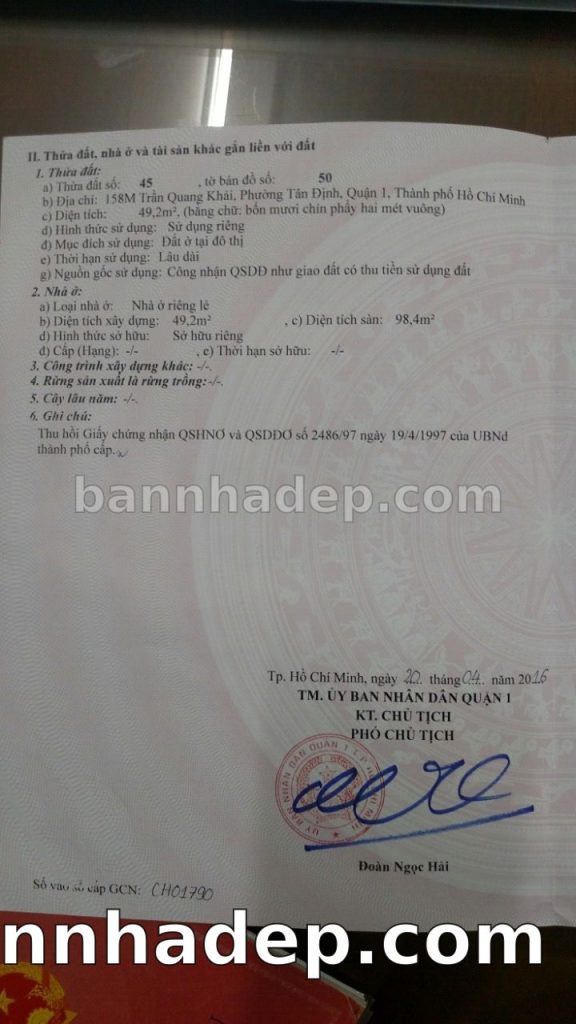 Bán nhà 22 Trần Quang Khải phường Tân Định quận 1