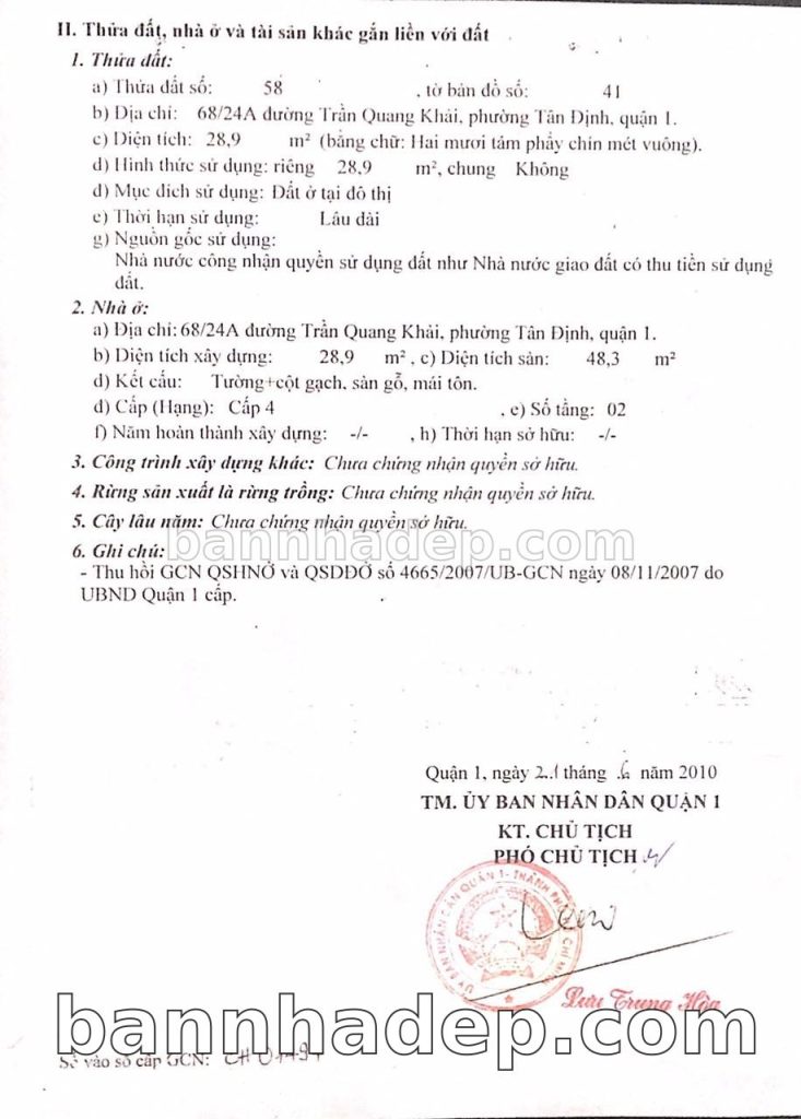 Bán nhà 68/272 Trần Quang Khải phường Tân Định quận 1