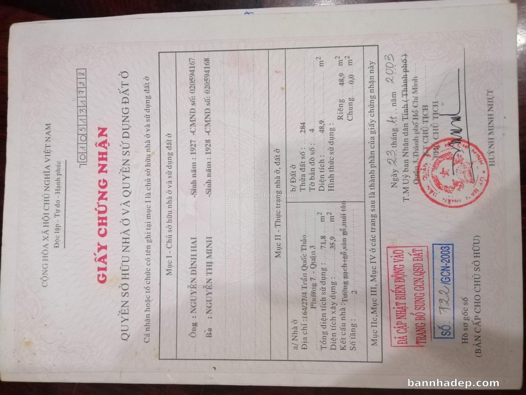 Bán nhà 42A1 Trần Quốc Thảo phường 07 quận 3