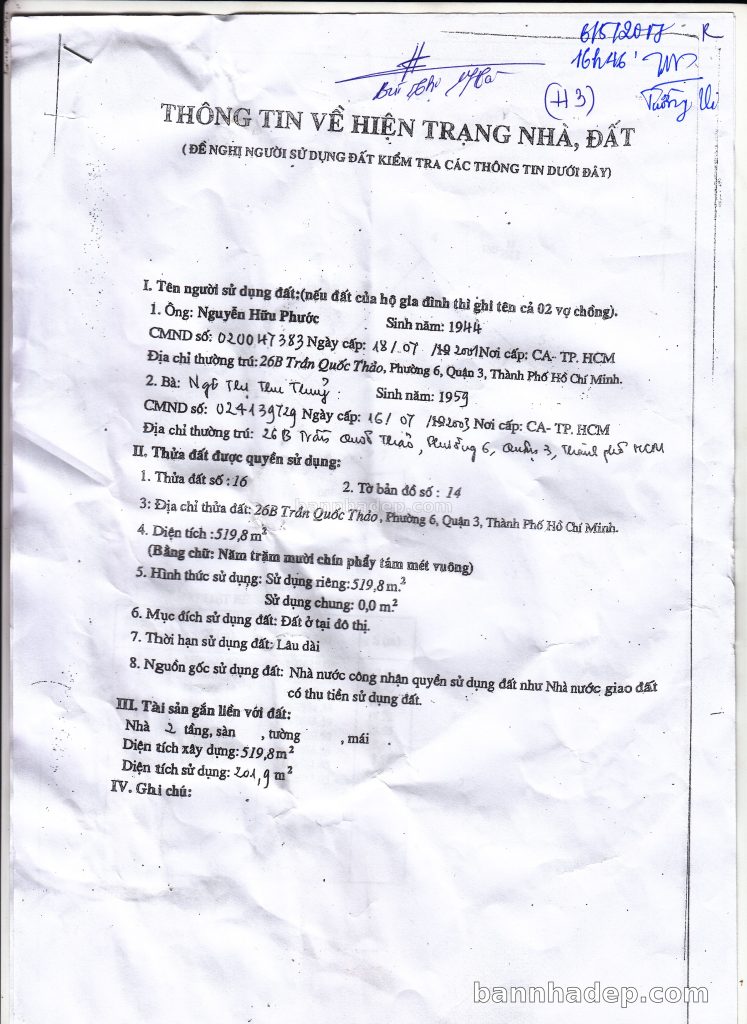 Bán nhà 26B Trần Quốc Thảo phường 06 quận 3