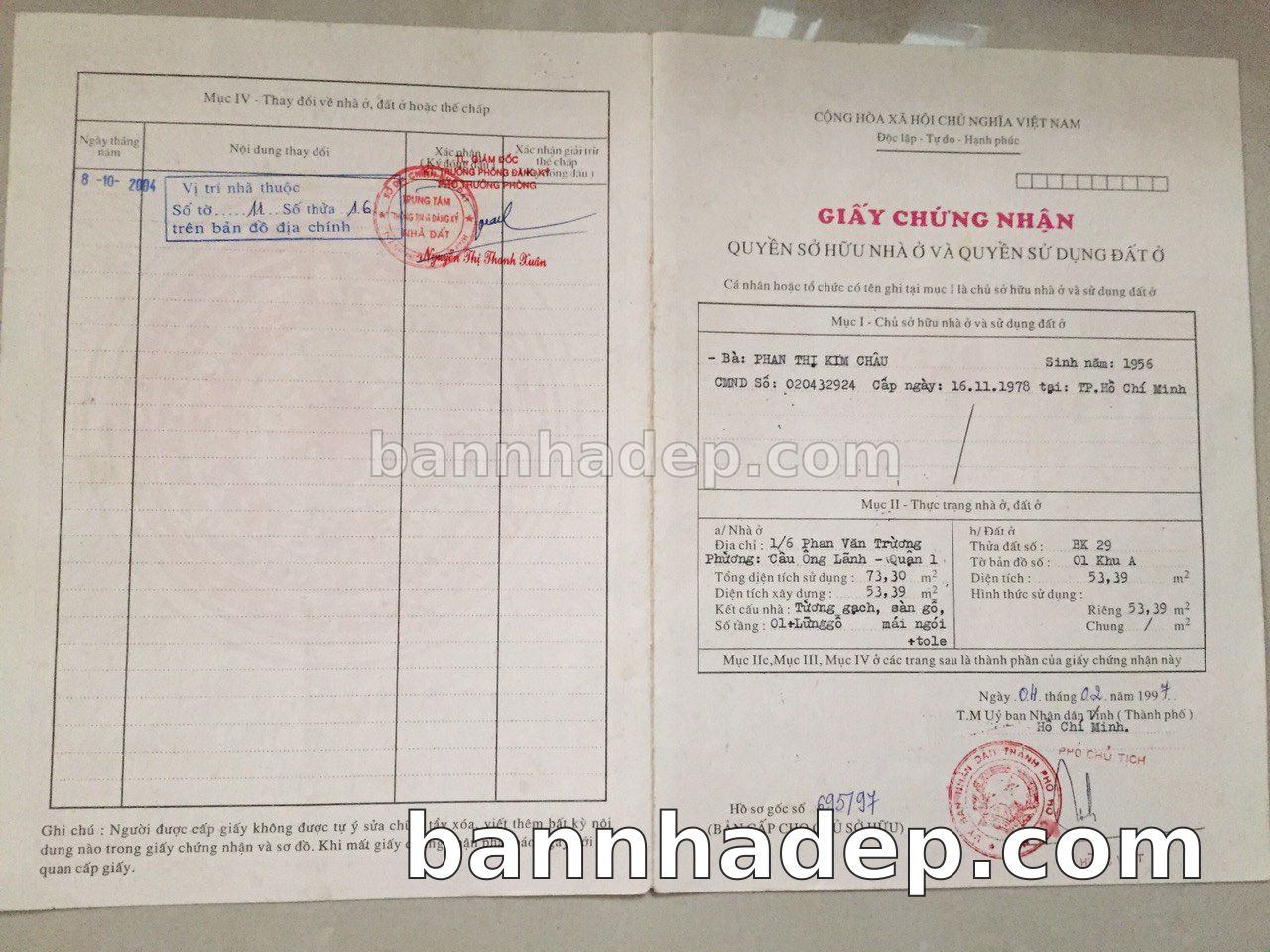 Bán nhà 6/5 Đề Thám phường Cầu Ông Lãnh quận 1