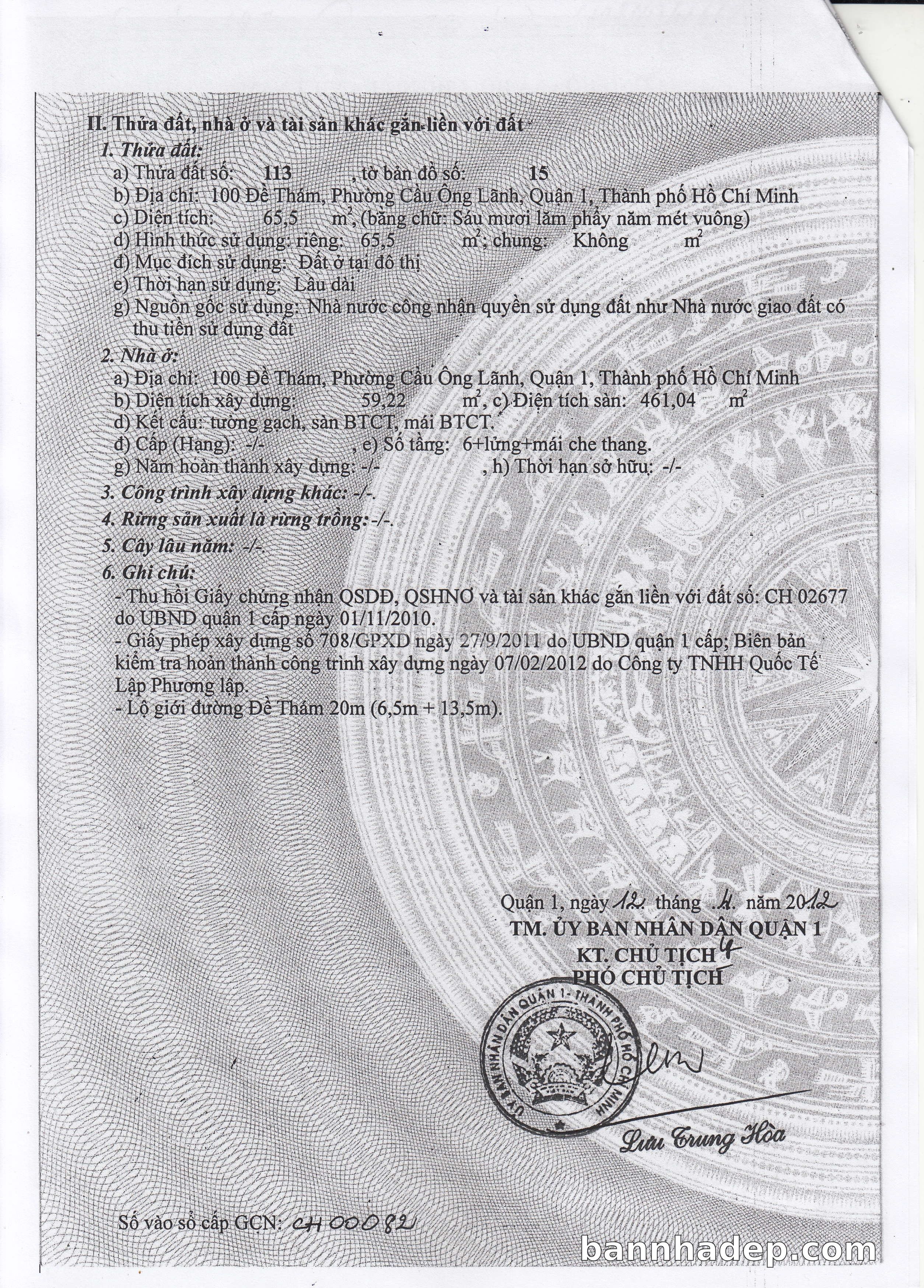 Bán nhà 100 Đề Thám phường Cầu Ông Lãnh quận 1