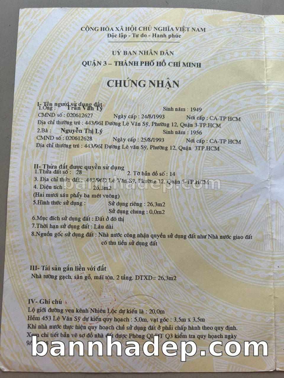 BÁN NHÀ MẶT TIỀN Số 1008 Trường Sa Phường 12 Quận 3 TP. Hồ Chí Minh – GẦN TRUNG TÂM THƯƠNG MẠI LỚN – GIÁ TỐT 6,5 TỶ Bán nhà mặt tiền tại Số 1008 Trường Sa Phường 12 Quận 3 TP. Hồ Chí Minh – vị trí đắc địa. Thông tin chi tiết: • Địa chỉ: Số 1008 Trường Sa Phường 12 Quận 3 TP. Hồ Chí Minh • Diện tích: 2.7m x 9.7m, mặt tiền rộng • Vị trí: Mặt tiền đường Trường Sa, gần trường học quốc tế, khu vực sầm uất, tiềm năng kinh doanh cao • Pháp lý: Sổ hồng riêng, sẵn sàng sang tên • Giá bán: 6,5 Tỷ (còn thương lượng với khách thiện chí) Điểm nổi bật: • Khu vực phát triển, tiềm năng tăng trưởng cao • Vị trí đắc địa, tiềm năng sinh lời cao • Gần các tiện ích quan trọng: trường học, bệnh viện, siêu thị lớn • Phù hợp kinh doanh đa dạng ngành nghề