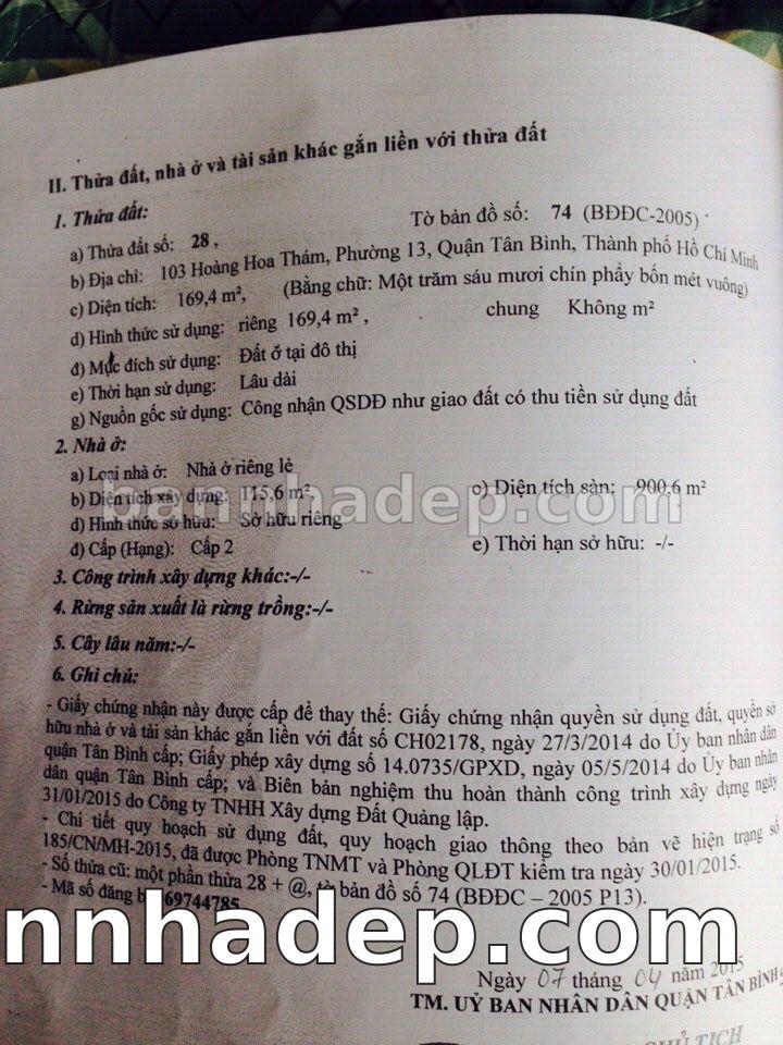 BÁN NHÀ Mặt tiền Số 103 Hoàng Hoa Thám phường 01 quận Tân Bình TP. Hồ Chí Minh – GẦN CÔNG VIÊN GIẢI TRÍ – GIÁ TỐT Cần bán gấp nhà Mặt tiền tại Số 103 Hoàng Hoa Thám phường 01 quận Tân Bình TP. Hồ Chí Minh – tiềm năng kinh doanh cao. Thông tin chi tiết: • Địa chỉ: Số 103 Hoàng Hoa Thám phường 01 quận Tân Bình TP. Hồ Chí Minh • Diện tích: như trong sổ, không gian lý tưởng • Vị trí: Mặt tiền đường Hoàng Hoa Thám, gần trung tâm thương mại lớn, khu vực sầm uất, tiềm năng kinh doanh cao • Pháp lý: Sổ hồng riêng, không tranh chấp, sẵn sàng giao dịch • Giá bán: Thoả Thuận (còn thương lượng với khách thiện chí) Lợi thế đặc biệt: • Vị trí trung tâm Quận Tân Bình • Giao thông thuận tiện, kết nối các quận trung tâm • Phù hợp kinh doanh dài hạn, ổn định • Khu vực sầm uất, tiềm năng kinh doanh tốt