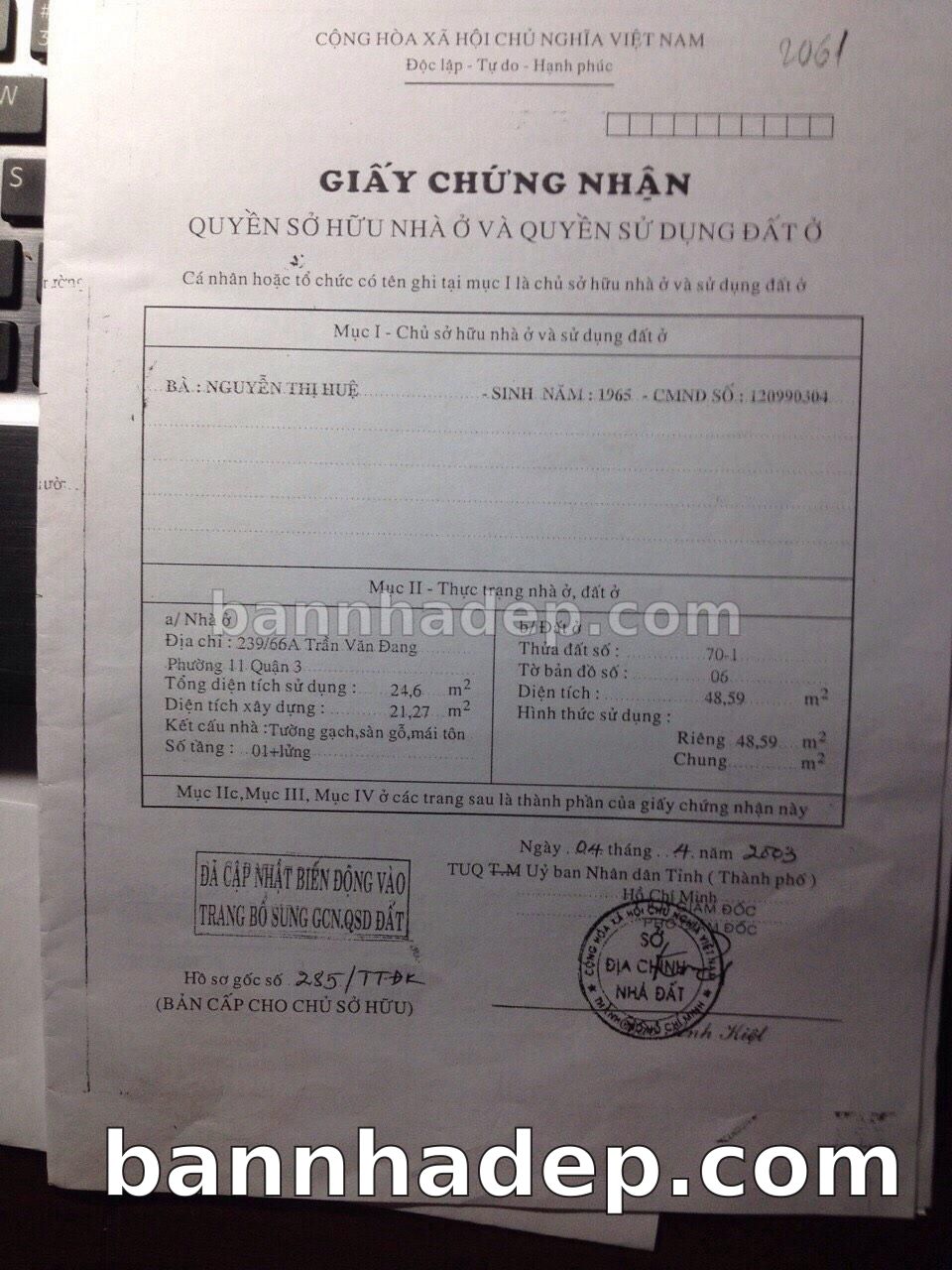 Bán nhà 1097 Hoàng Sa phường 01 quận 3