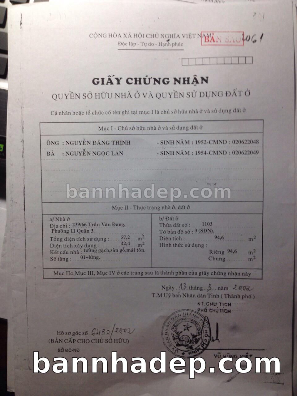 Bán nhà 1103 Hoàng Sa phường 01 quận 3
