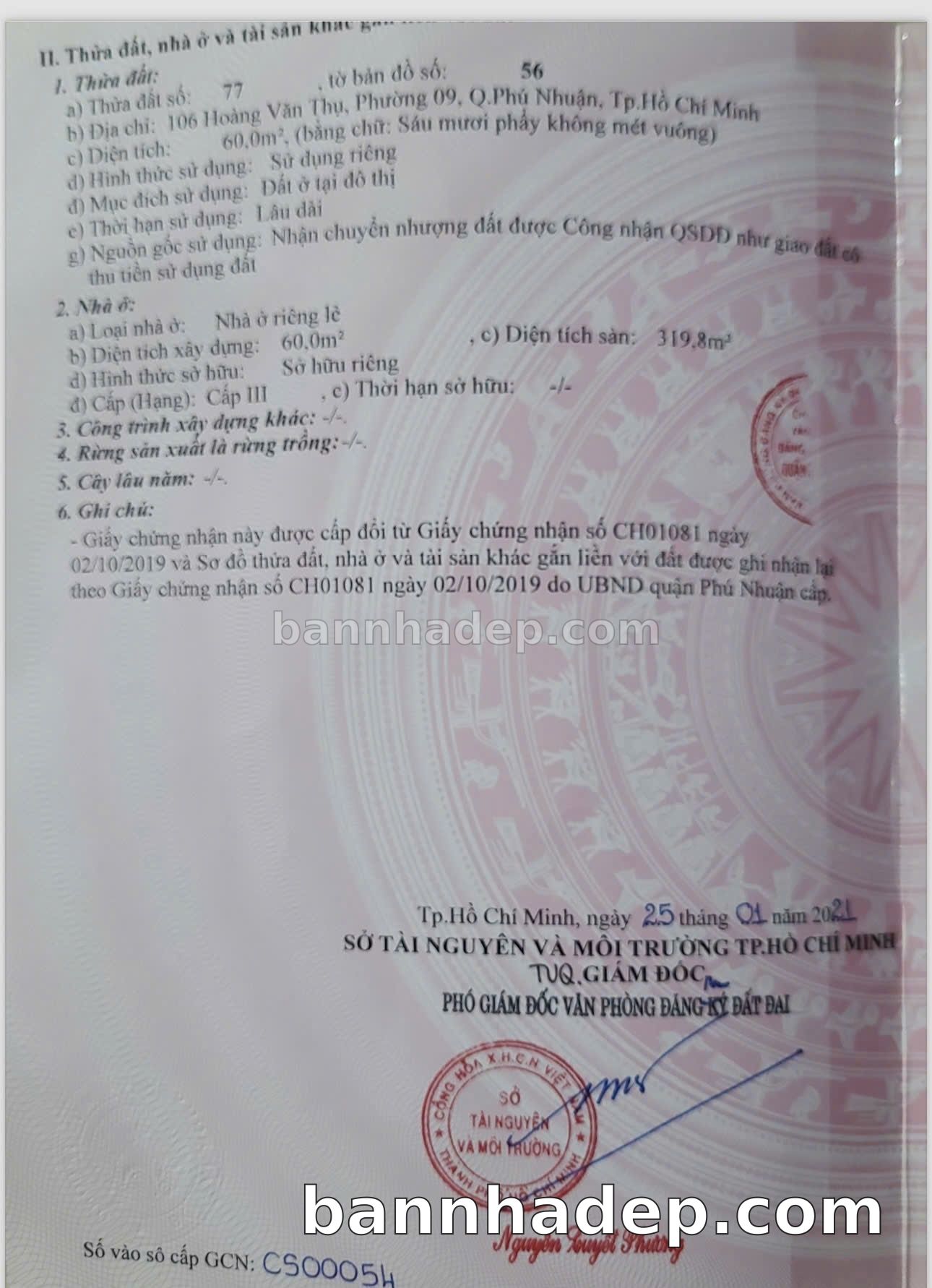 CẦN BÁN GẤP NHÀ MẶT TIỀN Số 106 Hoàng Văn Thụ Phường 9 Quận Phú Nhuận TP. Hồ Chí Minh – ĐỐI DIỆN TRƯỜNG HỌC – GIÁ 34 TỶ Cần bán gấp nhà mặt tiền kinh doanh tại Số 106 Hoàng Văn Thụ Phường 9 Quận Phú Nhuận TP. Hồ Chí Minh. Thông tin chi tiết: • Địa chỉ: Số 106 Hoàng Văn Thụ Phường 9 Quận Phú Nhuận TP. Hồ Chí Minh • Diện tích: 4.0m x 18.0m, đất vuông vức • Vị trí: Mặt tiền đường Hoàng Văn Thụ, gần trung tâm thương mại, khu vực sầm uất, tiềm năng cao • Pháp lý: Sổ hồng riêng, pháp lý minh bạch • Giá bán: 34 Tỷ (giá tốt nhất khu vực, có thể thương lượng) Ưu thế cạnh tranh: • Khu vực sầm uất, lưu lượng khách hàng lớn • Mặt tiền rộng, giá trị khai thác thương mại cao • Khu vực phát triển, tiềm năng tăng trưởng cao • Gần các tiện ích quan trọng: chợ, trường học, bệnh viện, công viên