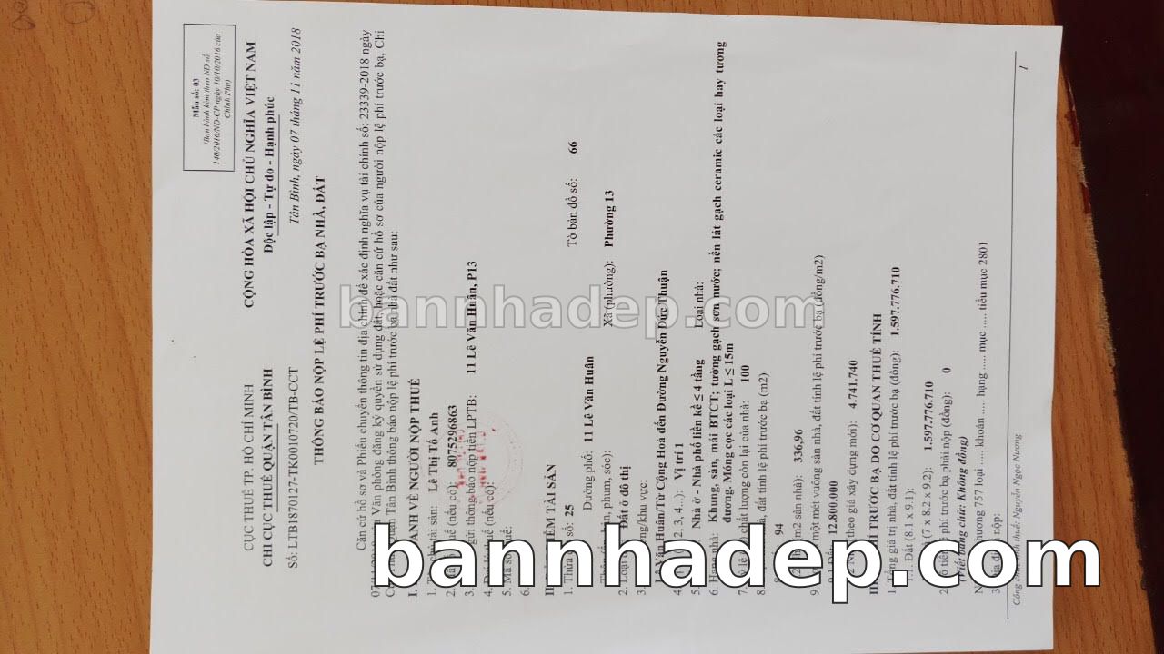 BÁN NHÀ Mặt tiền Số 11 Lê Văn Huân phường 01 quận Tân Bình TP. Hồ Chí Minh – GẦN CÔNG VIÊN GIẢI TRÍ – GIÁ TỐT Cần bán gấp nhà Mặt tiền tại Số 11 Lê Văn Huân phường 01 quận Tân Bình TP. Hồ Chí Minh – tiềm năng kinh doanh cao. Thông tin chi tiết: • Địa chỉ: Số 11 Lê Văn Huân phường 01 quận Tân Bình TP. Hồ Chí Minh • Diện tích: như trong sổ, không gian lý tưởng • Vị trí: Mặt tiền đường Lê Văn Huân, gần trung tâm thương mại lớn, khu vực sầm uất, tiềm năng kinh doanh cao • Pháp lý: Sổ hồng riêng, không tranh chấp, sẵn sàng giao dịch • Giá bán: Thoả Thuận (còn thương lượng với khách thiện chí) Lợi thế đặc biệt: • Vị trí trung tâm Quận Tân Bình • Giao thông thuận tiện, kết nối các quận trung tâm • Phù hợp kinh doanh dài hạn, ổn định • Khu vực sầm uất, tiềm năng kinh doanh tốt