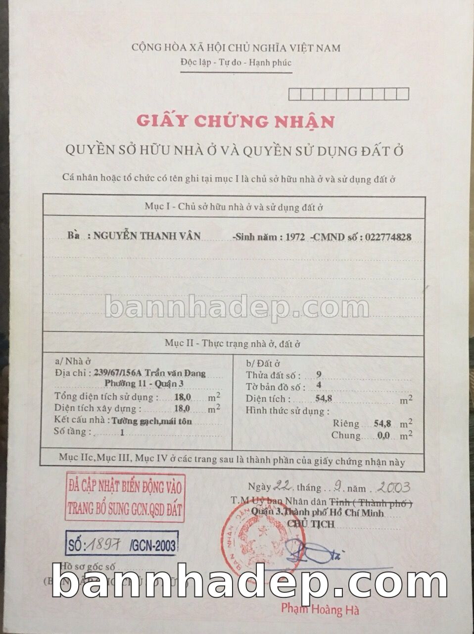 Bán nhà 1097 Hoàng Sa phường 01 quận 3