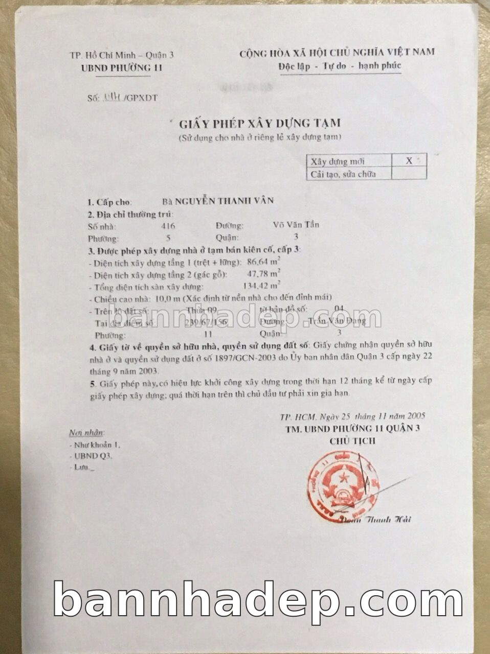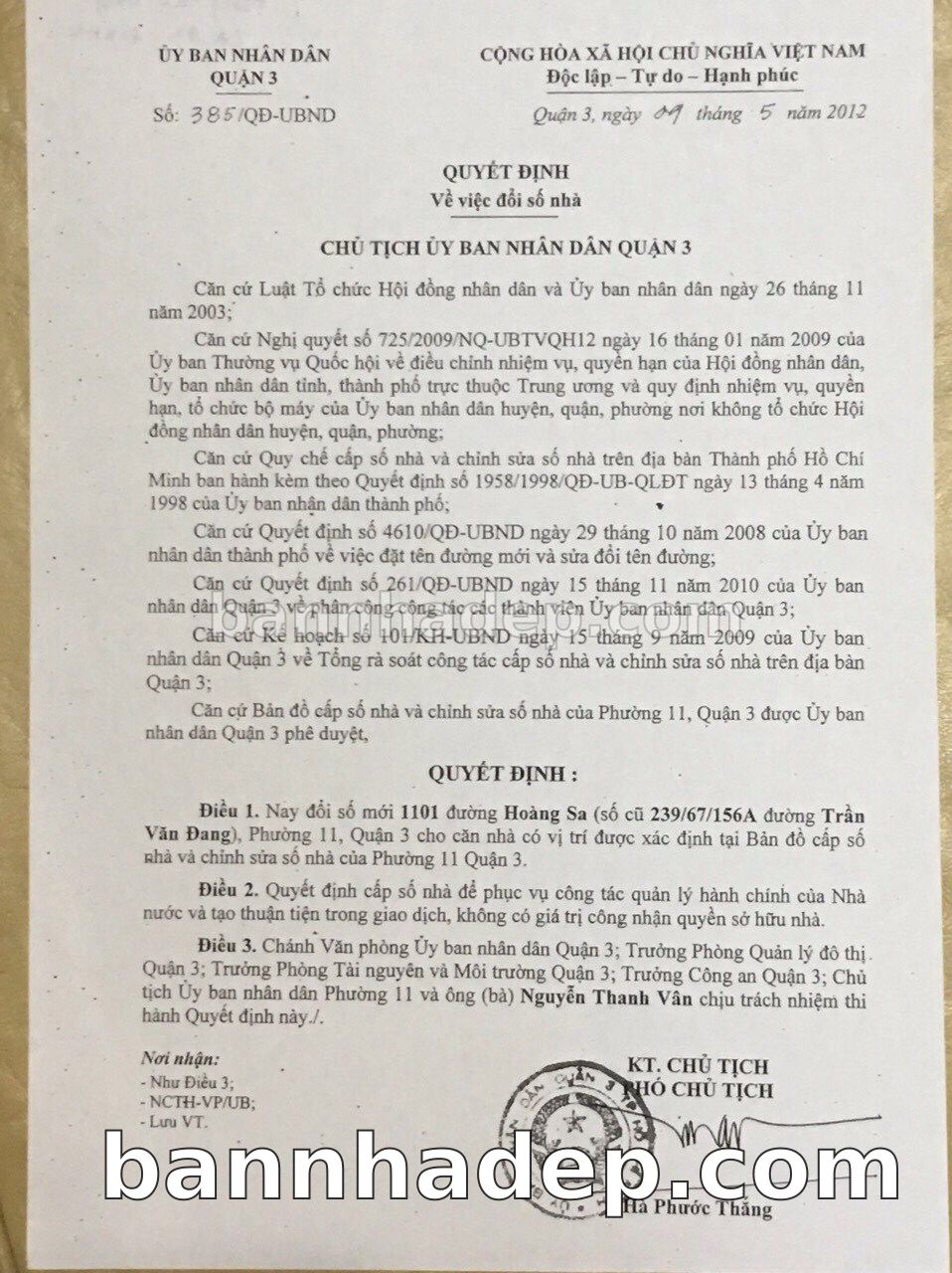 Bán nhà 1103 Hoàng Sa phường 01 quận 3