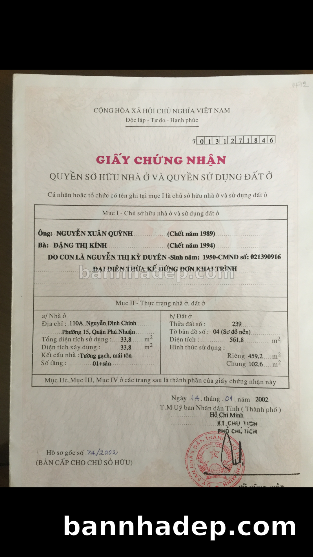 Bán nhà 150 tờ bản đồ số 1 phường 01 quận Phú Nhuận
