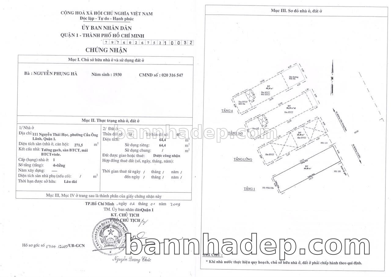 BÁN NHÀ Mặt tiền Số 111 Nguyễn Thái Học phường Cầu Ông Lãnh quận 1 TP. Hồ Chí Minh – GẦN CÔNG VIÊN GIẢI TRÍ – GIÁ TỐT Cần bán gấp nhà Mặt tiền tại Số 111 Nguyễn Thái Học phường Cầu Ông Lãnh quận 1 TP. Hồ Chí Minh – tiềm năng kinh doanh cao. Thông tin chi tiết: • Địa chỉ: Số 111 Nguyễn Thái Học phường Cầu Ông Lãnh quận 1 TP. Hồ Chí Minh • Diện tích: như trong sổ, không gian lý tưởng • Vị trí: Mặt tiền đường Nguyễn Thái Học, gần trung tâm thương mại lớn, khu vực sầm uất, tiềm năng kinh doanh cao • Pháp lý: Sổ hồng riêng, không tranh chấp, sẵn sàng giao dịch • Giá bán: Thoả Thuận (còn thương lượng với khách thiện chí) Lợi thế đặc biệt: • Vị trí trung tâm Quận 1 • Giao thông thuận tiện, kết nối các quận trung tâm • Phù hợp kinh doanh dài hạn, ổn định • Khu vực sầm uất, tiềm năng kinh doanh tốt
