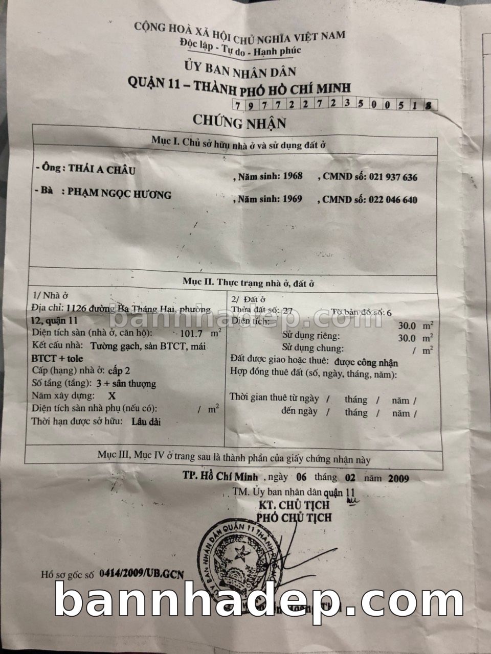 Bán nhà 1126 Ba Tháng Hai phường 01 quận 10