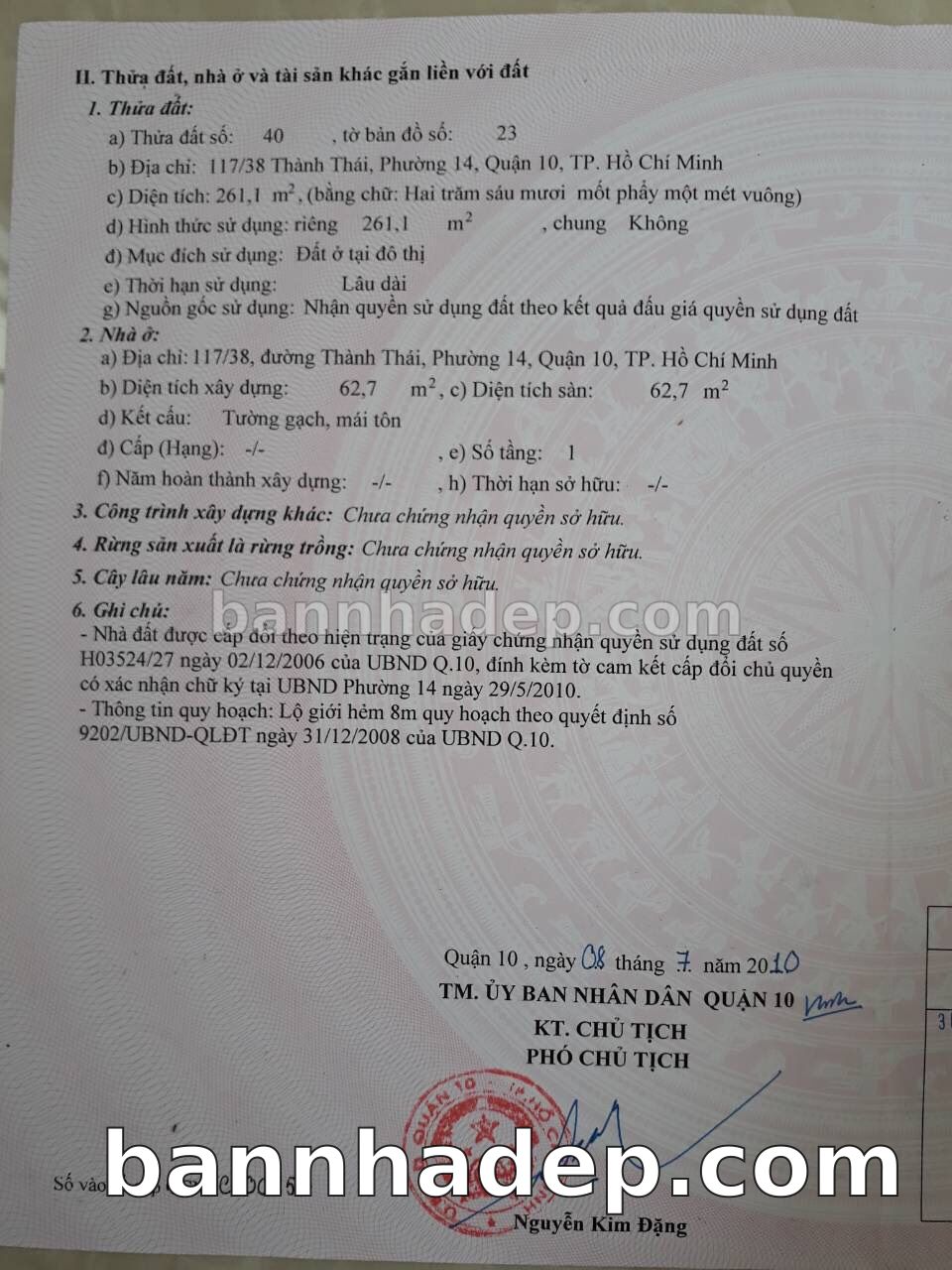 BÁN NHÀ Đường hẻm Số 117/38 Thành Thái phường 01 quận 10 TP. Hồ Chí Minh – GẦN CÔNG VIÊN GIẢI TRÍ – GIÁ TỐT Cần bán gấp nhà Đường hẻm tại Số 117/38 Thành Thái phường 01 quận 10 TP. Hồ Chí Minh – tiềm năng kinh doanh cao. Thông tin chi tiết: • Địa chỉ: Số 117/38 Thành Thái phường 01 quận 10 TP. Hồ Chí Minh • Diện tích: như trong sổ, không gian lý tưởng • Vị trí: Đường hẻm đường Thành Thái, gần trung tâm thương mại lớn, khu vực sầm uất, tiềm năng kinh doanh cao • Pháp lý: Sổ hồng riêng, không tranh chấp, sẵn sàng giao dịch • Giá bán: Thoả Thuận (còn thương lượng với khách thiện chí) Lợi thế đặc biệt: • Vị trí trung tâm Quận 10 • Giao thông thuận tiện, kết nối các quận trung tâm • Phù hợp kinh doanh dài hạn, ổn định • Khu vực sầm uất, tiềm năng kinh doanh tốt