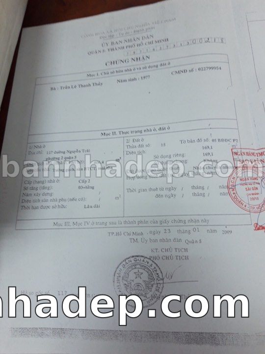 BÁN NHÀ Mặt tiền Số 117 Nguyễn Trãi phường 02 quận 5 TP. Hồ Chí Minh – GẦN CÔNG VIÊN GIẢI TRÍ – GIÁ TỐT Cần bán gấp nhà Mặt tiền tại Số 117 Nguyễn Trãi phường 02 quận 5 TP. Hồ Chí Minh – tiềm năng kinh doanh cao. Thông tin chi tiết: • Địa chỉ: Số 117 Nguyễn Trãi phường 02 quận 5 TP. Hồ Chí Minh • Diện tích: như trong sổ, không gian lý tưởng • Vị trí: Mặt tiền đường Nguyễn Trãi, gần trung tâm thương mại lớn, khu vực sầm uất, tiềm năng kinh doanh cao • Pháp lý: Sổ hồng riêng, không tranh chấp, sẵn sàng giao dịch • Giá bán: Thoả Thuận (còn thương lượng với khách thiện chí) Lợi thế đặc biệt: • Vị trí trung tâm Quận 5 • Giao thông thuận tiện, kết nối các quận trung tâm • Phù hợp kinh doanh dài hạn, ổn định • Khu vực sầm uất, tiềm năng kinh doanh tốt