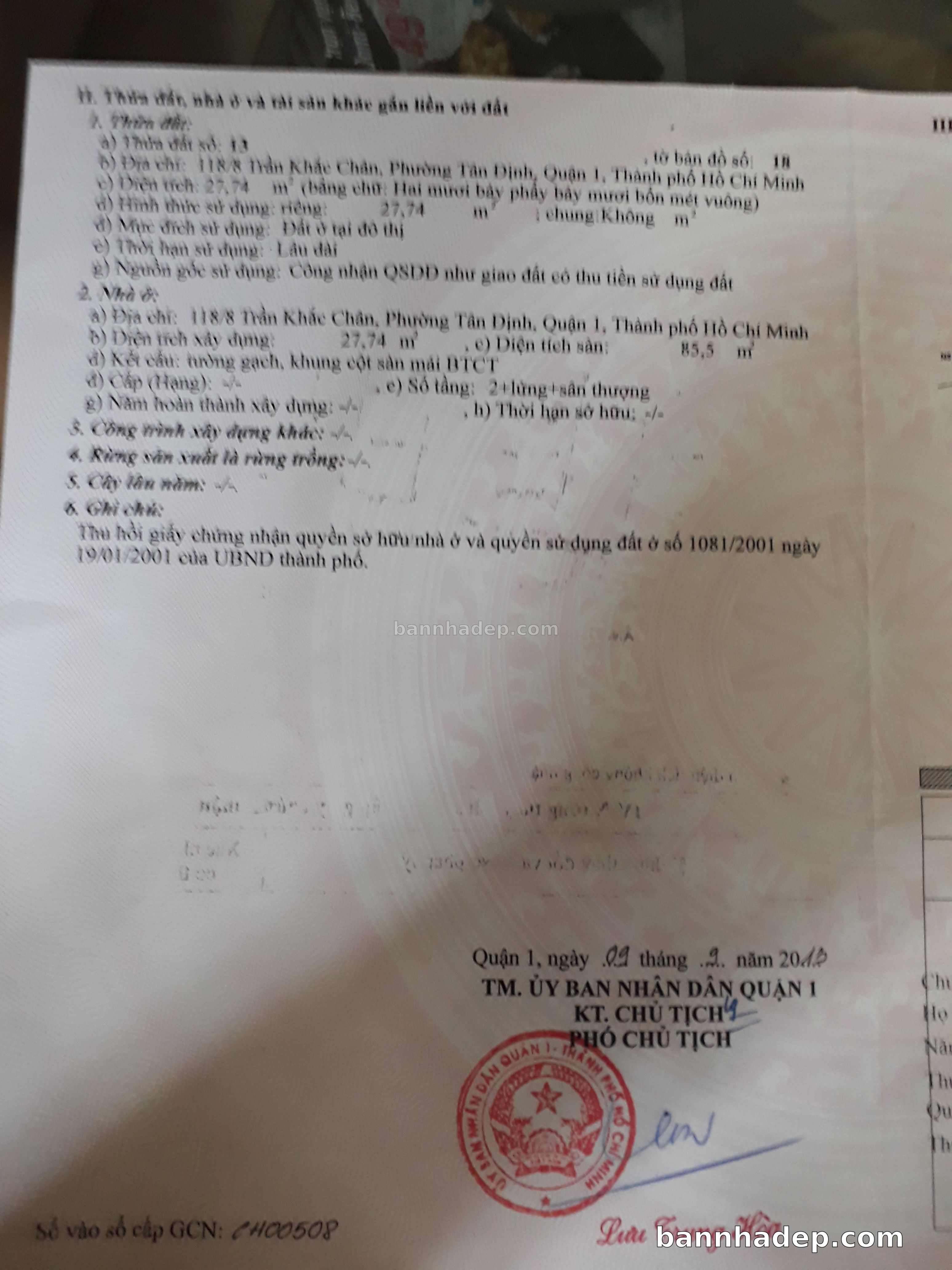Bán nhà 118/8 Trần Khắc Chân phường Tân Định quận 1