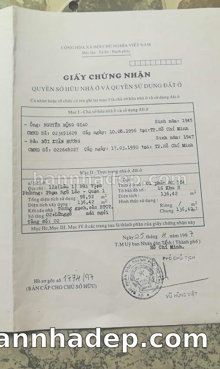 BÁN NHÀ Mặt tiền Số 12-12A Bùi Viện phường Phạm Ngũ Lão quận 1 TP. Hồ Chí Minh – GẦN CÔNG VIÊN GIẢI TRÍ – GIÁ TỐT Cần bán gấp nhà Mặt tiền tại Số 12-12A Bùi Viện phường Phạm Ngũ Lão quận 1 TP. Hồ Chí Minh – tiềm năng kinh doanh cao. Thông tin chi tiết: • Địa chỉ: Số 12-12A Bùi Viện phường Phạm Ngũ Lão quận 1 TP. Hồ Chí Minh • Diện tích: như trong sổ, không gian lý tưởng • Vị trí: Mặt tiền đường Bùi Viện, gần trung tâm thương mại lớn, khu vực sầm uất, tiềm năng kinh doanh cao • Pháp lý: Sổ hồng riêng, không tranh chấp, sẵn sàng giao dịch • Giá bán: Thoả Thuận (còn thương lượng với khách thiện chí) Lợi thế đặc biệt: • Vị trí trung tâm Quận 1 • Giao thông thuận tiện, kết nối các quận trung tâm • Phù hợp kinh doanh dài hạn, ổn định • Khu vực sầm uất, tiềm năng kinh doanh tốt