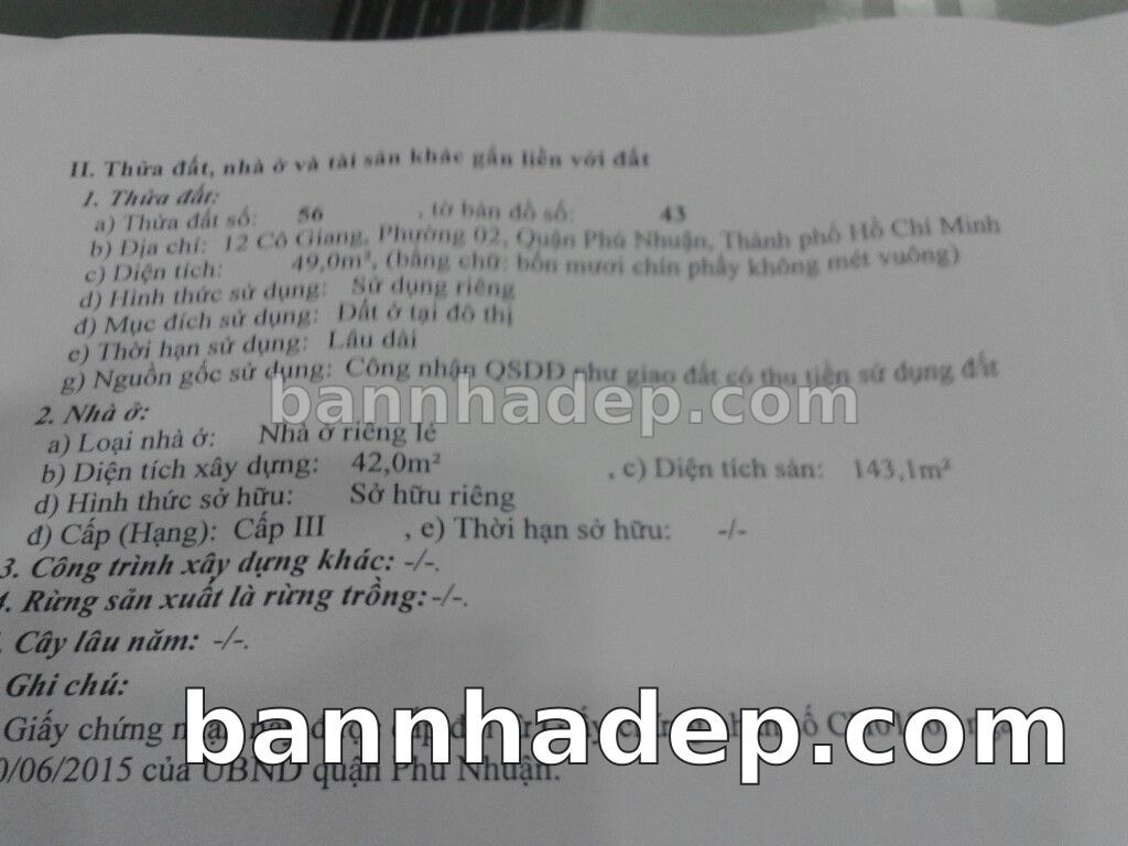 Bán nhà 38 Hoa Đào phường 02 quận Phú Nhuận