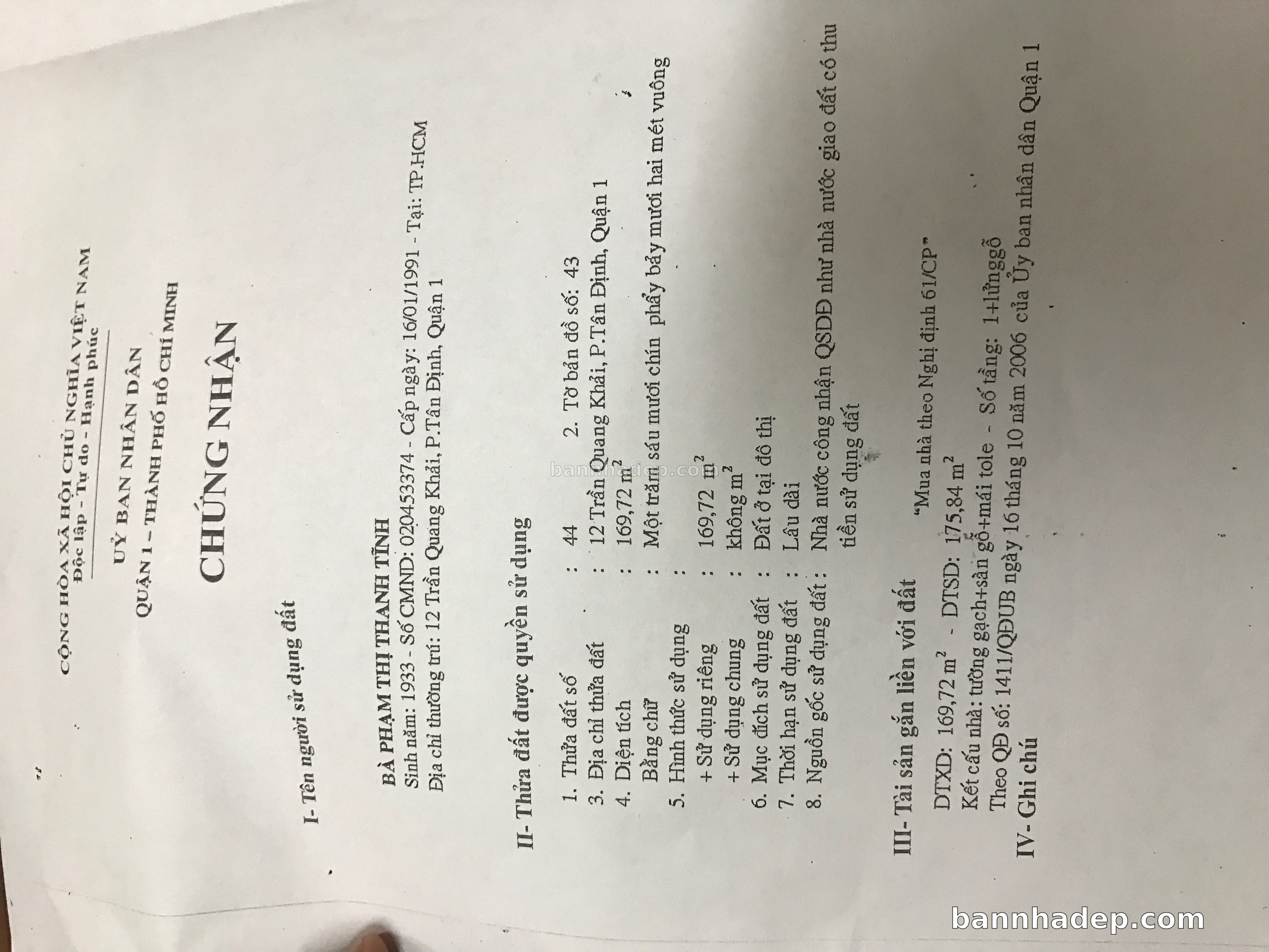 Bán nhà A06 Lý Văn Phức phường Tân Định quận 1