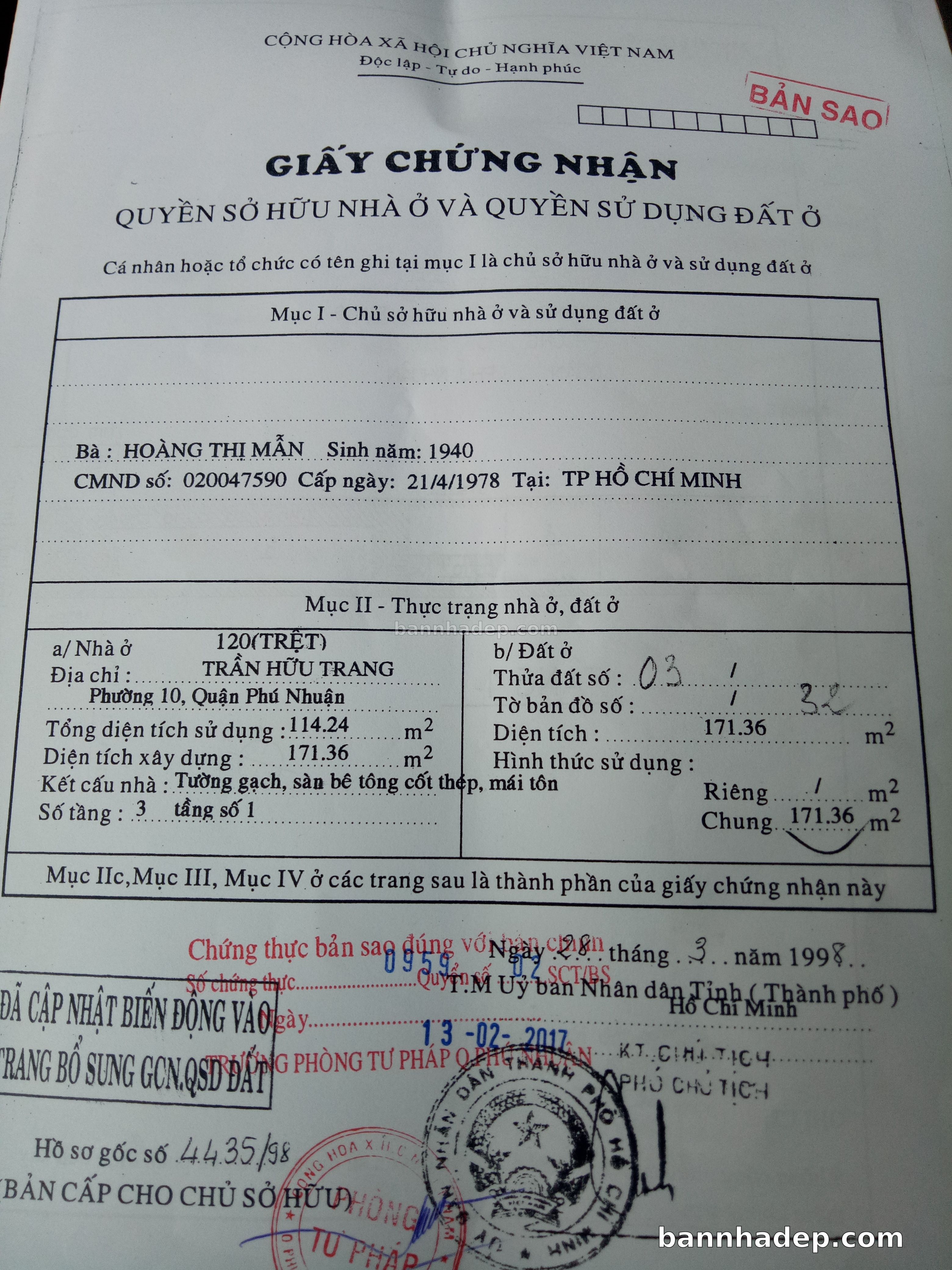 Bán nhà 150 tờ bản đồ số 1 phường 01 quận Phú Nhuận