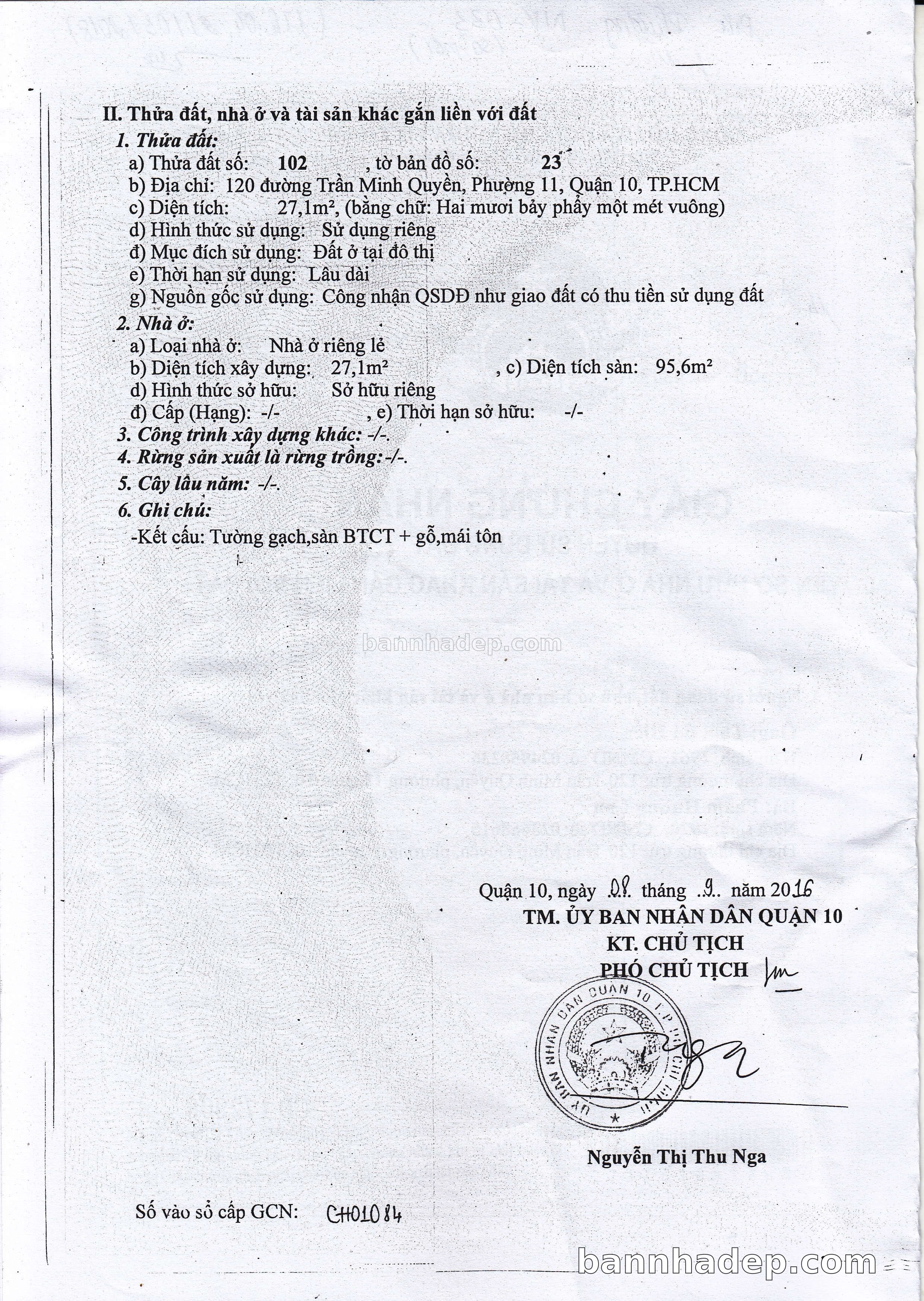 Bán nhà 120 Trần Minh Quyền phường 01 quận 10