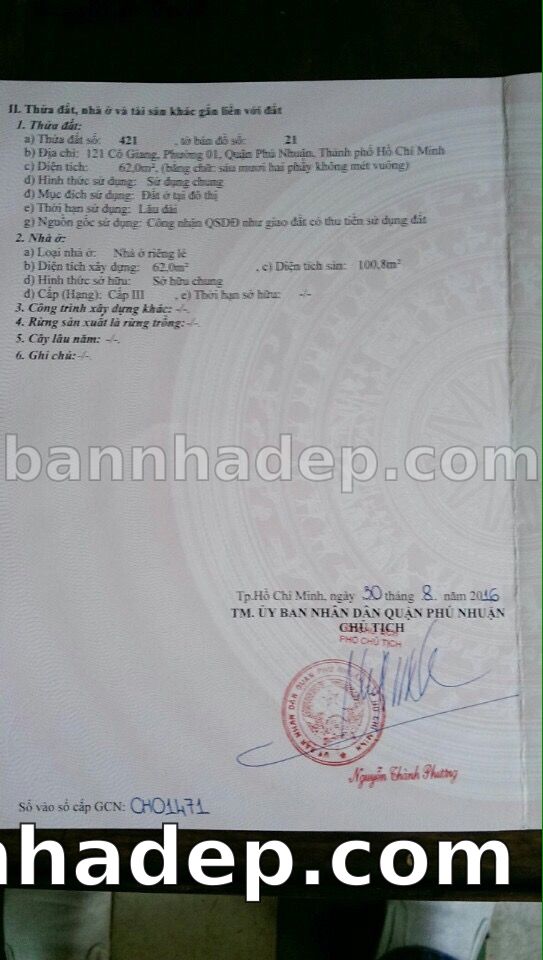 Bán nhà 150 tờ bản đồ số 1 phường 01 quận Phú Nhuận