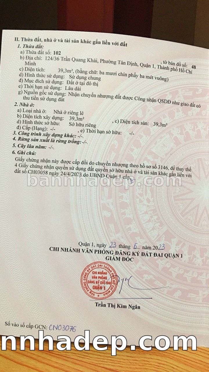 BÁN NHÀ MẶT TIỀN Số 124/36 Trần Quang Khải Phường Tân Định Quận 1 TP. Hồ Chí Minh – GẦN BỆNH VIỆN QUỐC TẾ – GIÁ TỐT 4 TỶ Bán gấp nhà mặt tiền tại Số 124/36 Trần Quang Khải Phường Tân Định Quận 1 TP. Hồ Chí Minh. Thông tin chi tiết: • Địa chỉ: Số 124/36 Trần Quang Khải Phường Tân Định Quận 1 TP. Hồ Chí Minh • Diện tích: 3.4m x 12.0m, không gian thoáng đãng • Vị trí: Mặt tiền đường Trần Quang Khải sầm uất, gần công viên, khu vực dân cư đông đúc, lưu lượng xe cộ lớn – cực kỳ thích hợp kinh doanh mọi ngành nghề: cửa hàng tiện lợi, quán ăn, tiệm giặt là, văn phòng, showroom • Pháp lý: Sổ hồng riêng, sẵn sàng sang tên • Giá bán: 4 Tỷ (còn thương lượng với khách thiện chí) Điểm nổi bật: • Giao thông thuận tiện, kết nối các quận trung tâm • Phù hợp kinh doanh dài hạn, ổn định • Khu vực phát triển, tiềm năng tăng trưởng cao • Mặt tiền rộng, giá trị khai thác thương mại cao