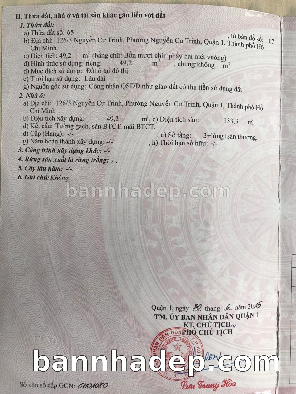 BÁN NHÀ Đường hẻm Số 126/3 Nguyễn Cư Trinh phường Nguyễn Cư Trinh quận 1 TP. Hồ Chí Minh – GẦN CÔNG VIÊN GIẢI TRÍ – GIÁ TỐT Cần bán gấp nhà Đường hẻm tại Số 126/3 Nguyễn Cư Trinh phường Nguyễn Cư Trinh quận 1 TP. Hồ Chí Minh – tiềm năng kinh doanh cao. Thông tin chi tiết: • Địa chỉ: Số 126/3 Nguyễn Cư Trinh phường Nguyễn Cư Trinh quận 1 TP. Hồ Chí Minh • Diện tích: như trong sổ, không gian lý tưởng • Vị trí: Đường hẻm đường Nguyễn Cư Trinh, gần trung tâm thương mại lớn, khu vực sầm uất, tiềm năng kinh doanh cao • Pháp lý: Sổ hồng riêng, không tranh chấp, sẵn sàng giao dịch • Giá bán: Thoả Thuận (còn thương lượng với khách thiện chí) Lợi thế đặc biệt: • Vị trí trung tâm Quận 1 • Giao thông thuận tiện, kết nối các quận trung tâm • Phù hợp kinh doanh dài hạn, ổn định • Khu vực sầm uất, tiềm năng kinh doanh tốt