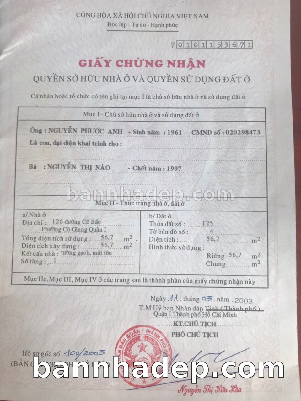 Bán nhà 126 Cô Bắc phường Cô Giang quận 1