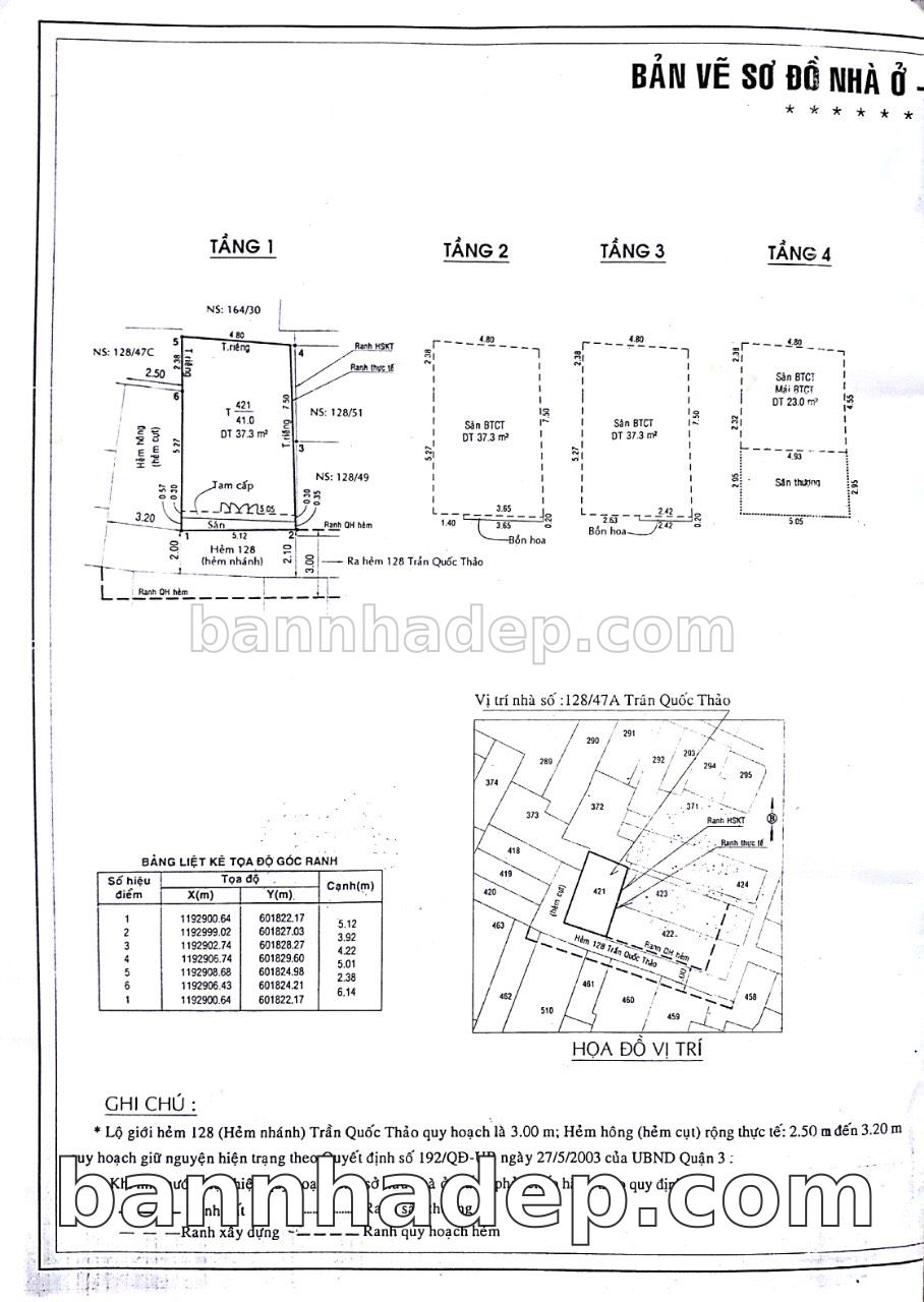 Bán nhà 128/47A Trần Quốc Thảo phường 07 quận 3
