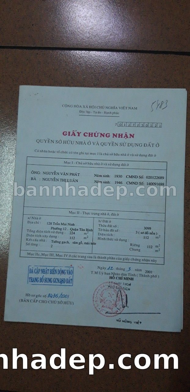 Bán nhà 128 Trần Mai Ninh phường 01 quận Tân Bình