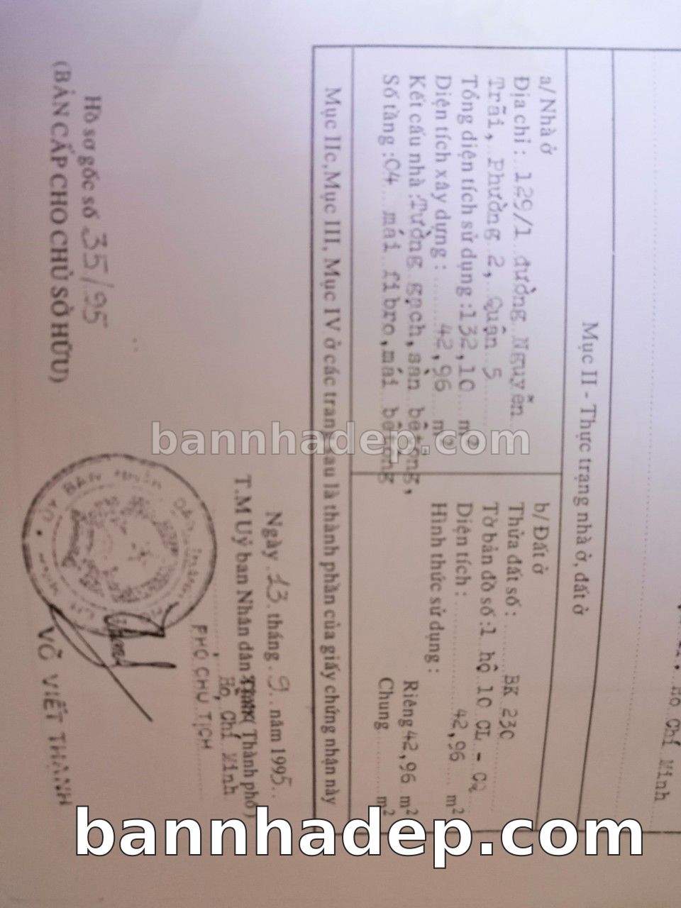 BÁN NHÀ Đường hẻm Số 129/1 Nguyễn Trãi phường 02 quận 5 TP. Hồ Chí Minh – GẦN CÔNG VIÊN GIẢI TRÍ – GIÁ TỐT Cần bán gấp nhà Đường hẻm tại Số 129/1 Nguyễn Trãi phường 02 quận 5 TP. Hồ Chí Minh – tiềm năng kinh doanh cao. Thông tin chi tiết: • Địa chỉ: Số 129/1 Nguyễn Trãi phường 02 quận 5 TP. Hồ Chí Minh • Diện tích: như trong sổ, không gian lý tưởng • Vị trí: Đường hẻm đường Nguyễn Trãi, gần trung tâm thương mại lớn, khu vực sầm uất, tiềm năng kinh doanh cao • Pháp lý: Sổ hồng riêng, không tranh chấp, sẵn sàng giao dịch • Giá bán: Thoả Thuận (còn thương lượng với khách thiện chí) Lợi thế đặc biệt: • Vị trí trung tâm Quận 5 • Giao thông thuận tiện, kết nối các quận trung tâm • Phù hợp kinh doanh dài hạn, ổn định • Khu vực sầm uất, tiềm năng kinh doanh tốt
